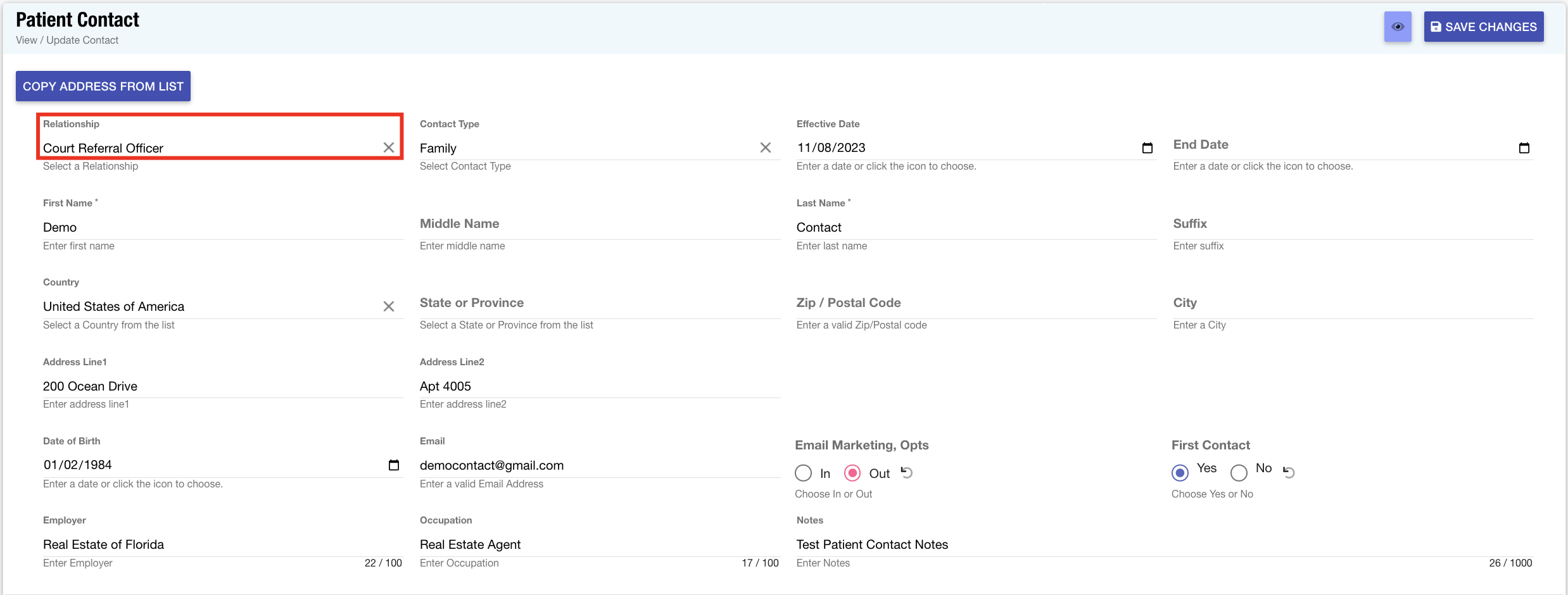 Customize Lists: The contact relationship list has been updated to now include a new option titled "Court Referral Officer", providing users with a more comprehensive range of options for classifying patient contacts.