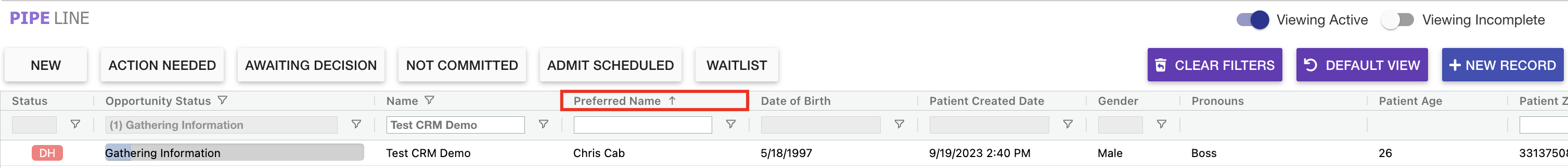 Admissions Pipeline: The admissions pipeline grid has been updated to include a new column showcasing Preferred Name to ensure that staff members are able to better communicate with their prospective clients.