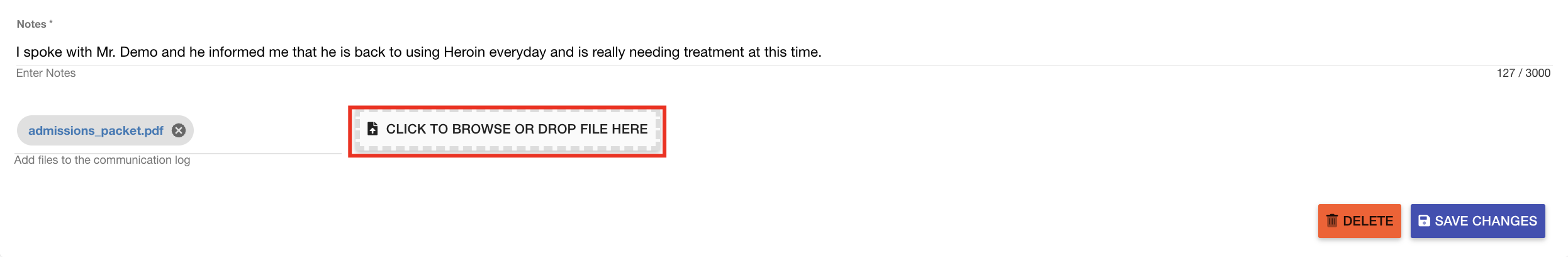 - Once you have filled out all of the details of your communication log, select Save Changes.