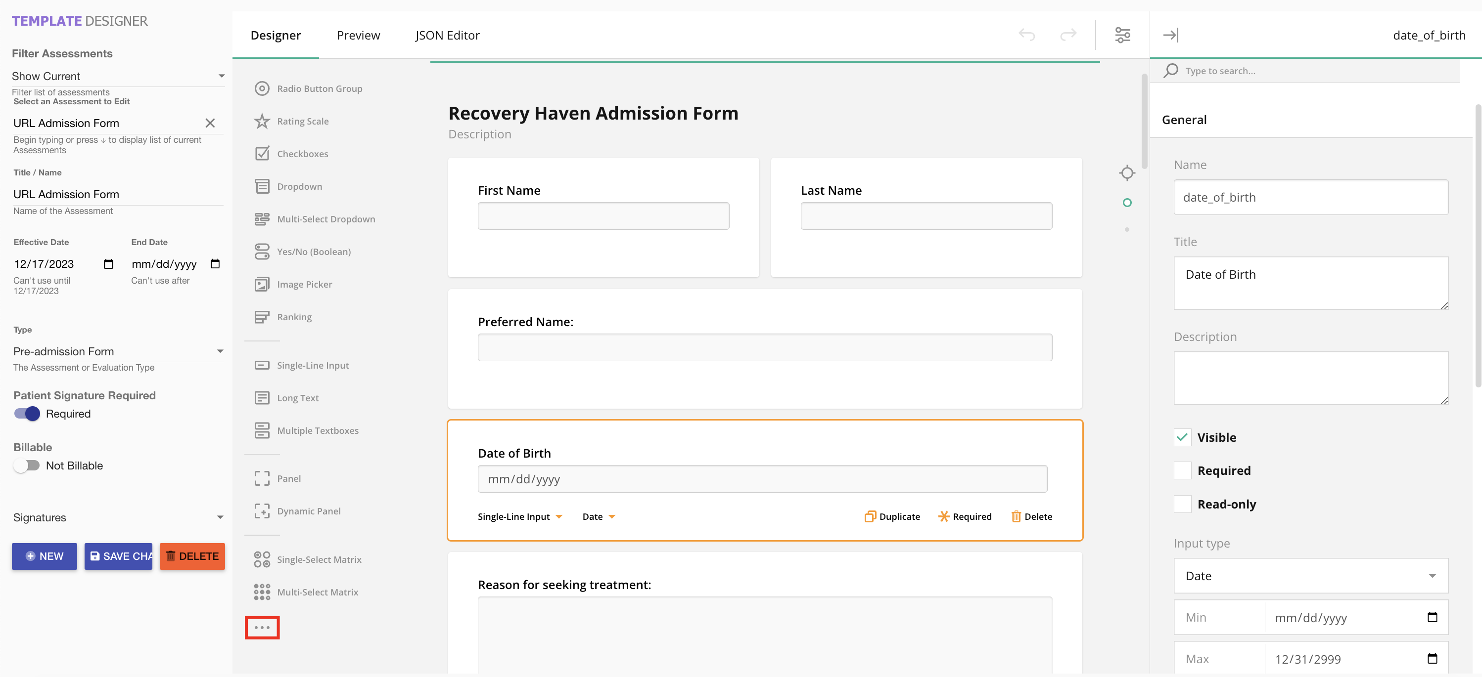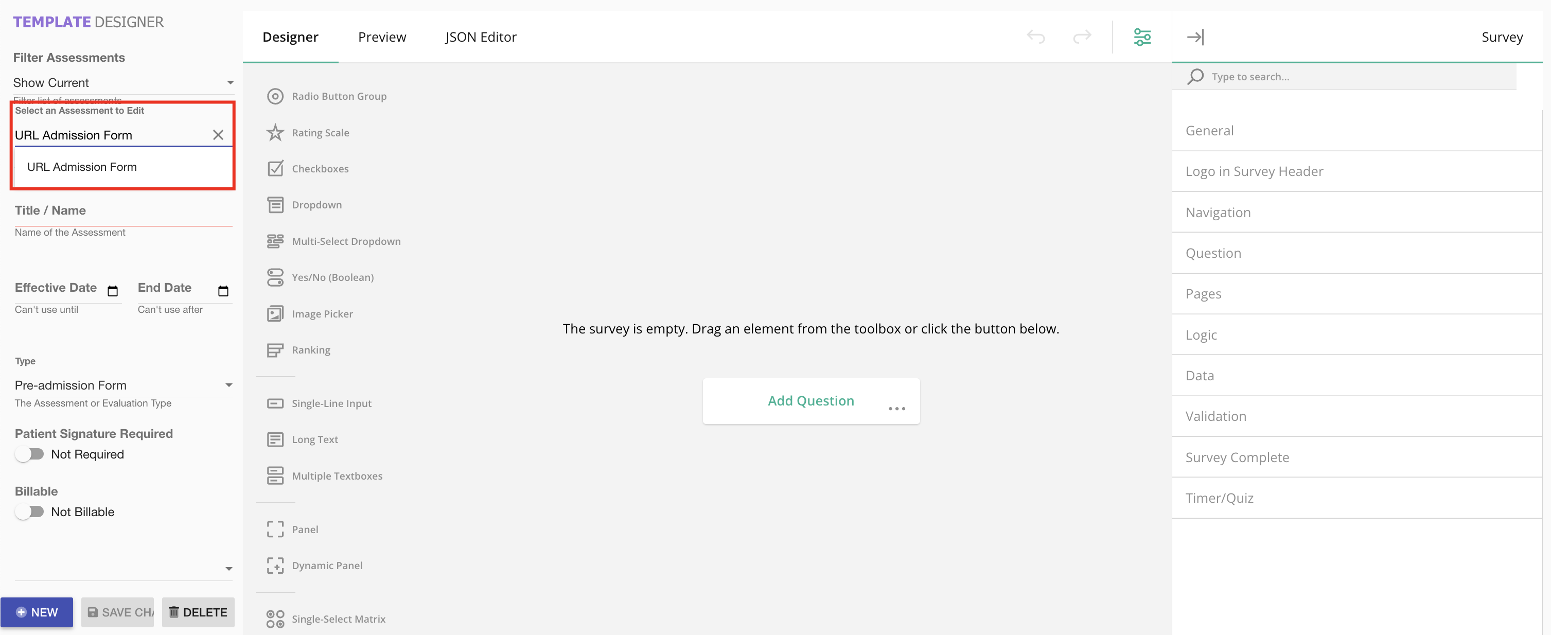 - Using the Select an Assessment to Edit field, choose your desired form template.