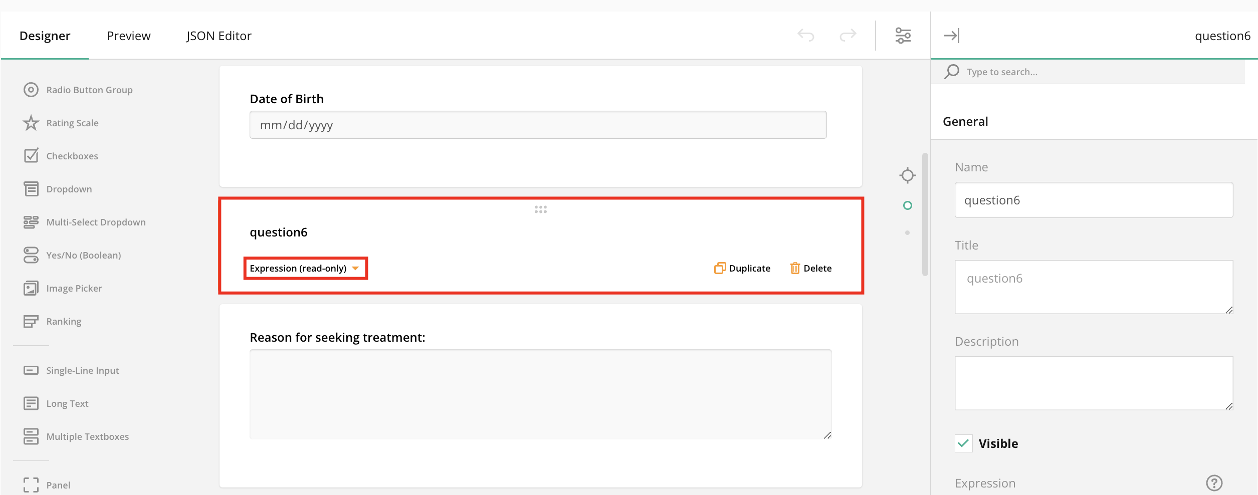 - Select the Expression (read-only) field to add it to your form template.