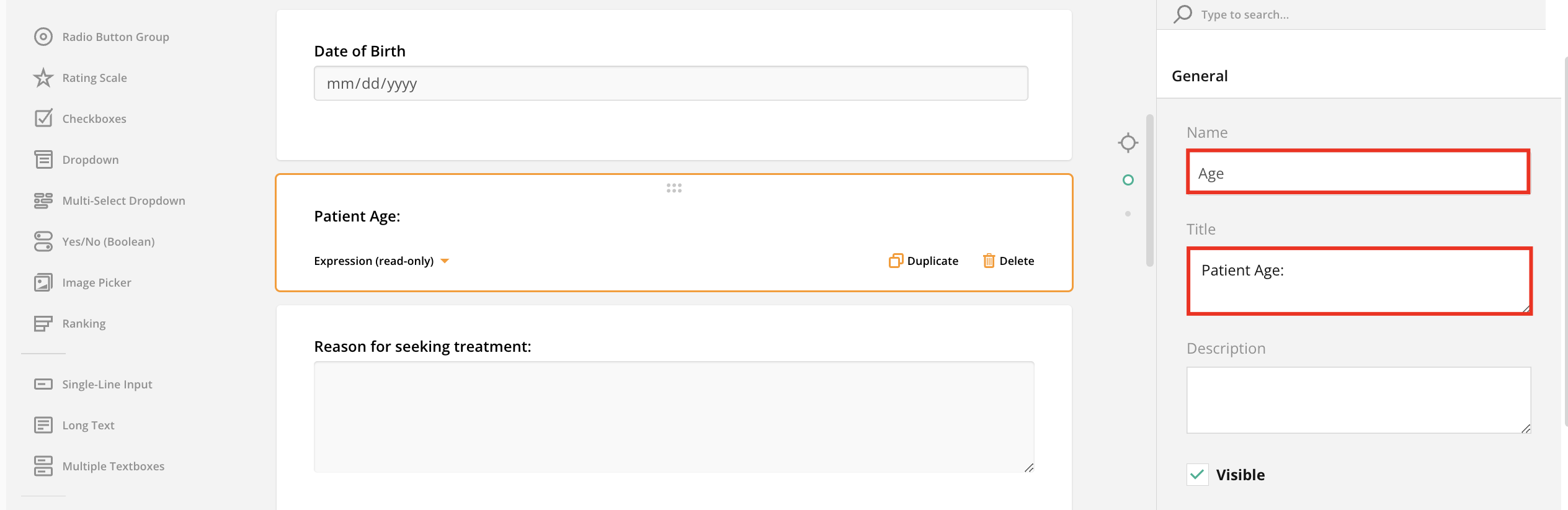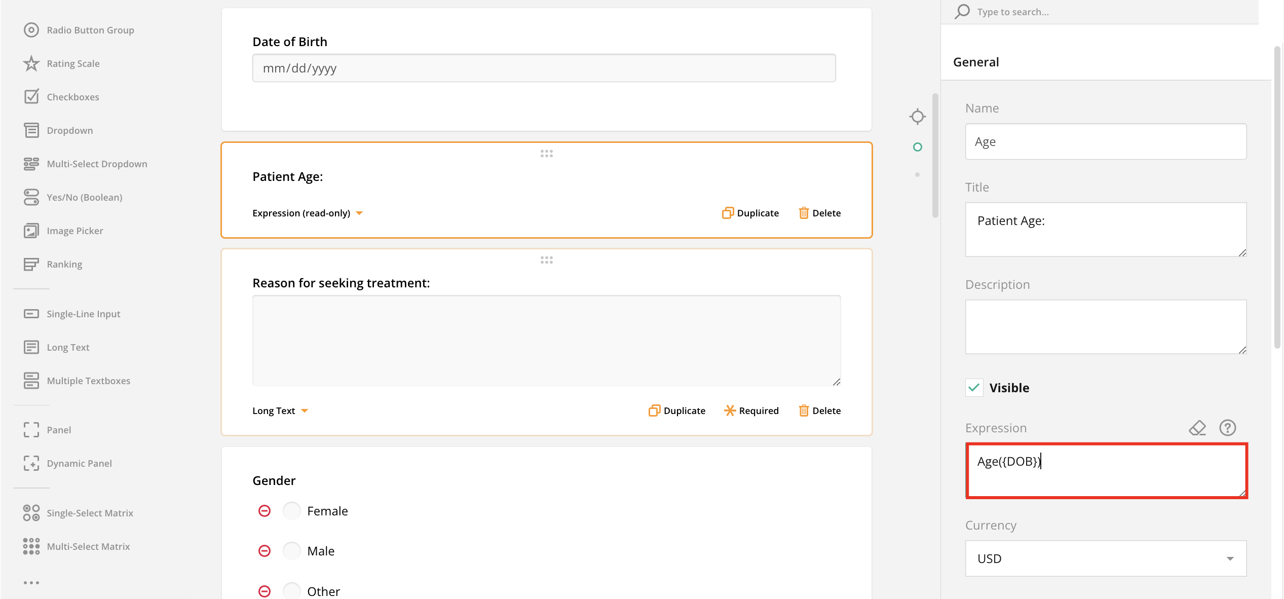 - Your expression field has been configured to auto-calculate age based on the date of birth documented on the form. For good measure, we recommend testing this expression prior to saving your changes.