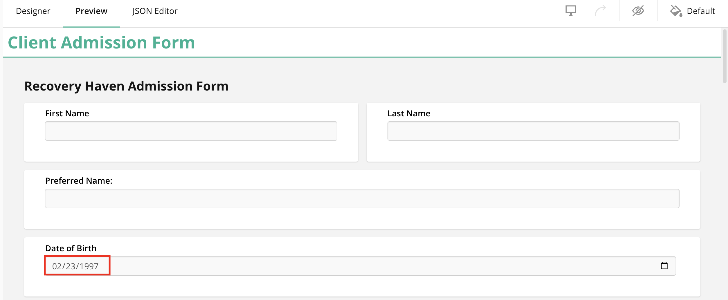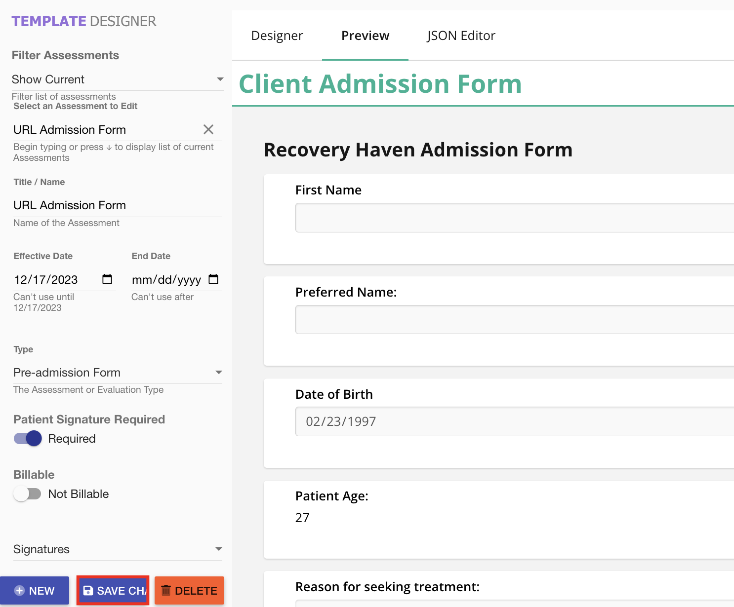 The form template you will be using must contain a Date of Birth field in order to facilitate the auto-calculation of age for the patient. For guidance on how to create a form template in the CRM, please click here.