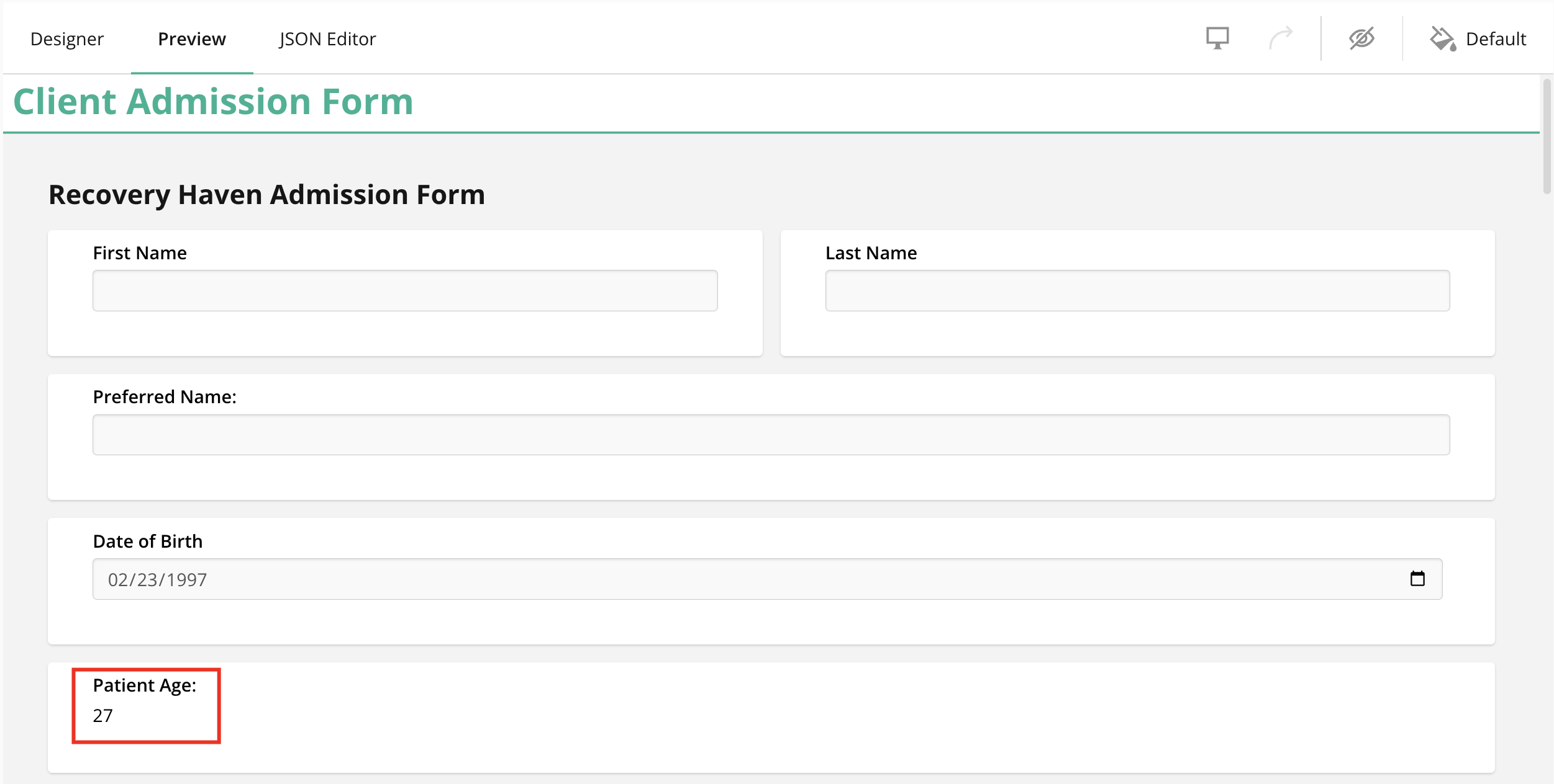I would like to set up my form template to auto-calculate the age of the patient based on the date of birth we document on the form. This would eliminate the possibility of inaccurate documentation of the client's age in our assessment forms.