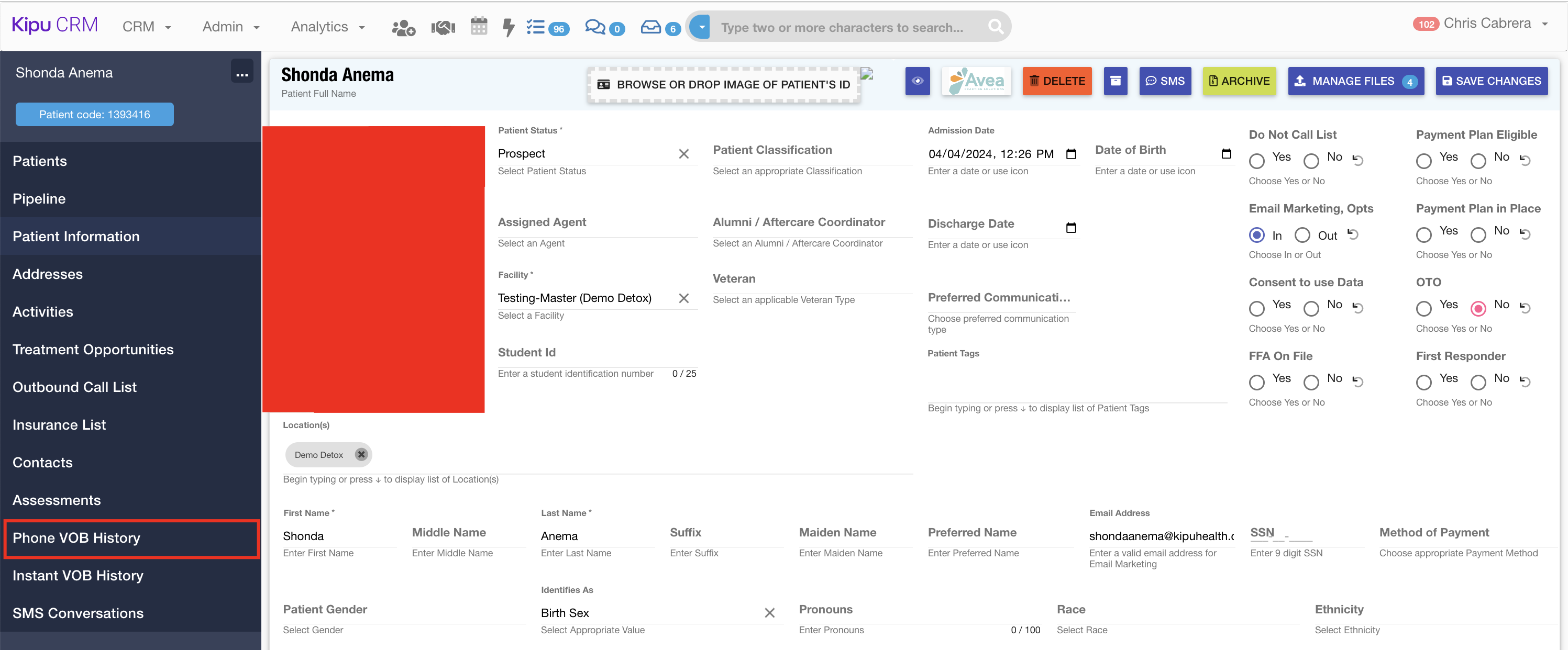 Kipu CRM, Roles: External 3rd Party VOB Worker, Admission Worker, Combined +, Combined (Admissions and B.D.), VOB Worker, Restricted Admissions Worker, Super User | VOB 2.0