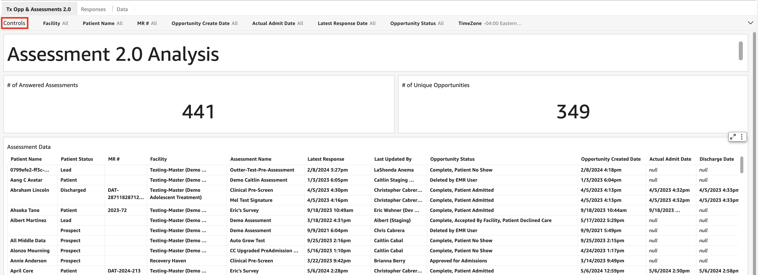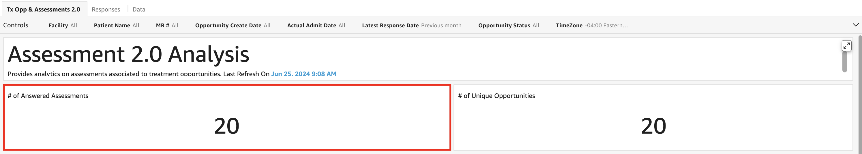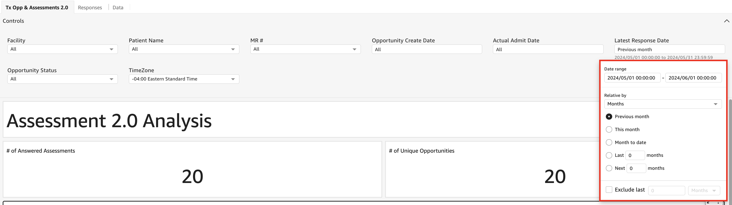 - In the Tx Opp & Assessments 2.0 tab, select controls to access the available filters.