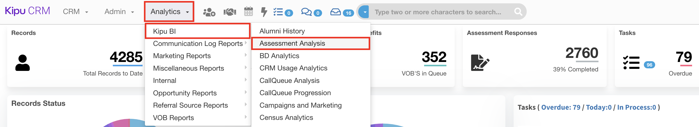 - Navigate to Analytics > Kipu BI > Assessment Analysis.