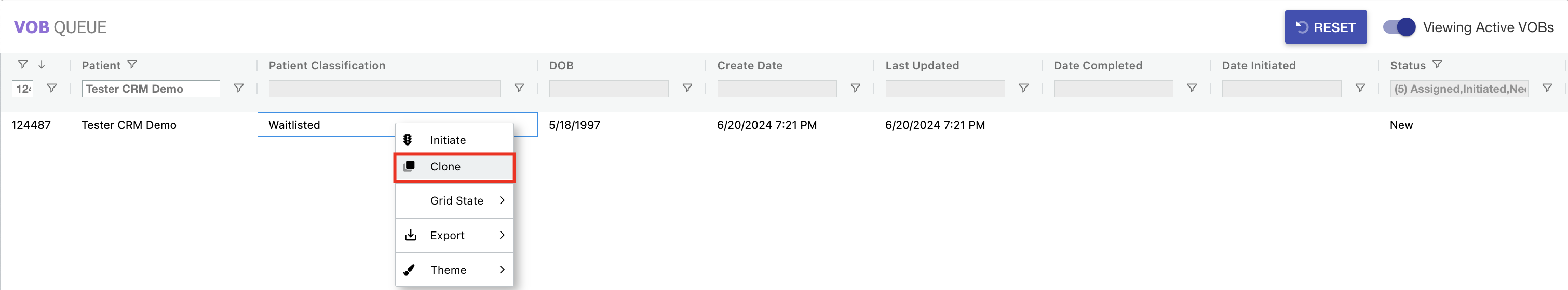VOB 2.0: The VOB 2.0 application has been enhanced to include the ability to Clone VOBs. This functionality allows users to easily duplicate historical phone VOB records, streamlining VOB processes for existing patients.