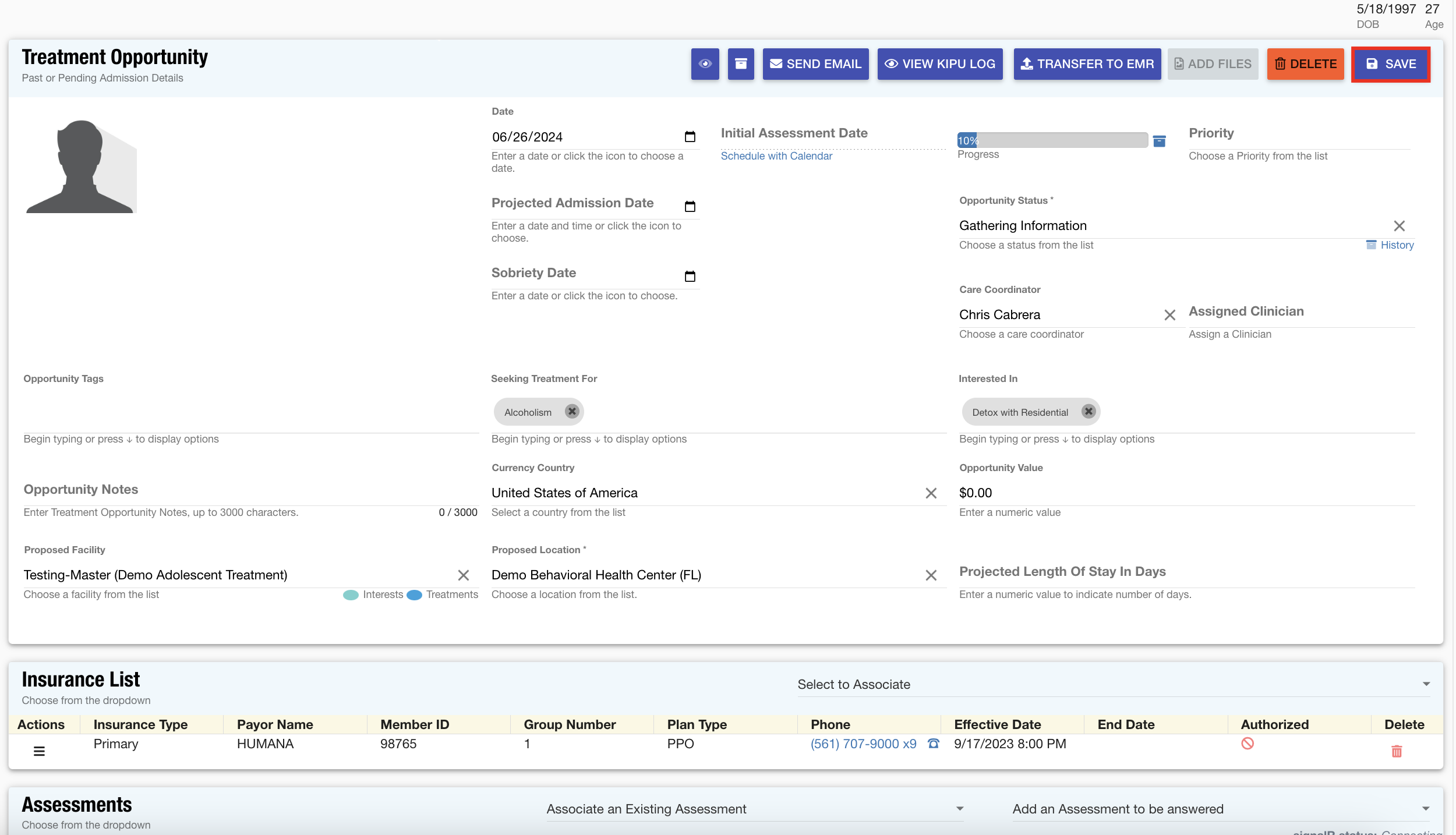 Important: Please note that users can associate multiple assessment records with a single treatment opportunity.
