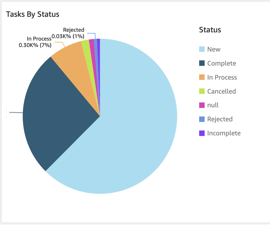 Task by Status: Provides a breakdown of tasks by the percentage in each given status, offering insight into the distribution of task progress.