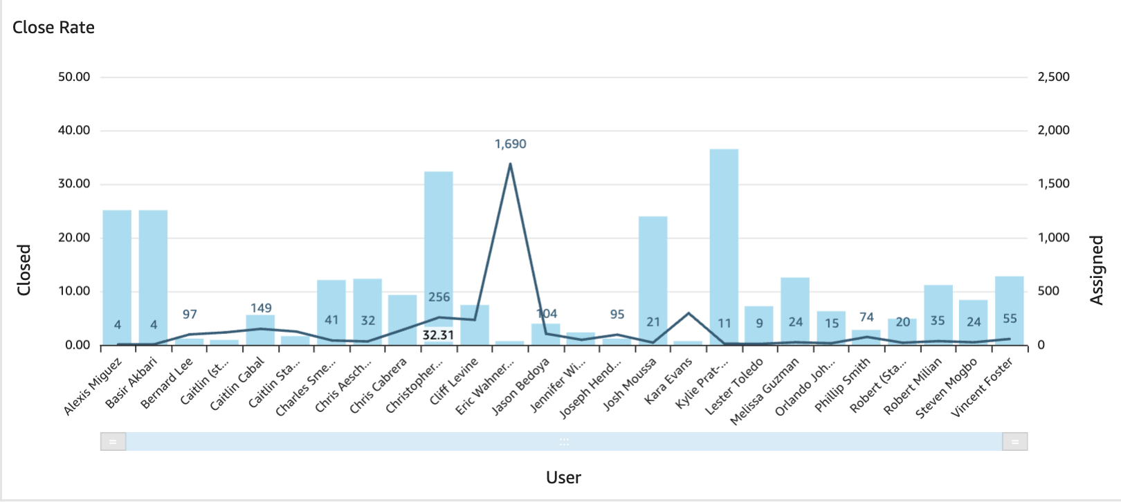 Close Rate: Calculates and presents the close rate, offering a percentage-based metric to evaluate the efficiency and effectiveness of task completion based on the assigned users.