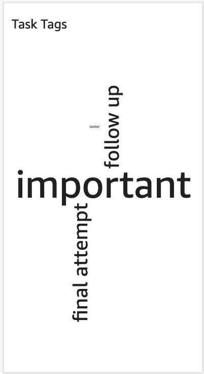 Task Tags: Enables filtering and analysis of tasks based on the tags applied, providing a detailed view of task categorization and the ability to generate reports based on specific tags.