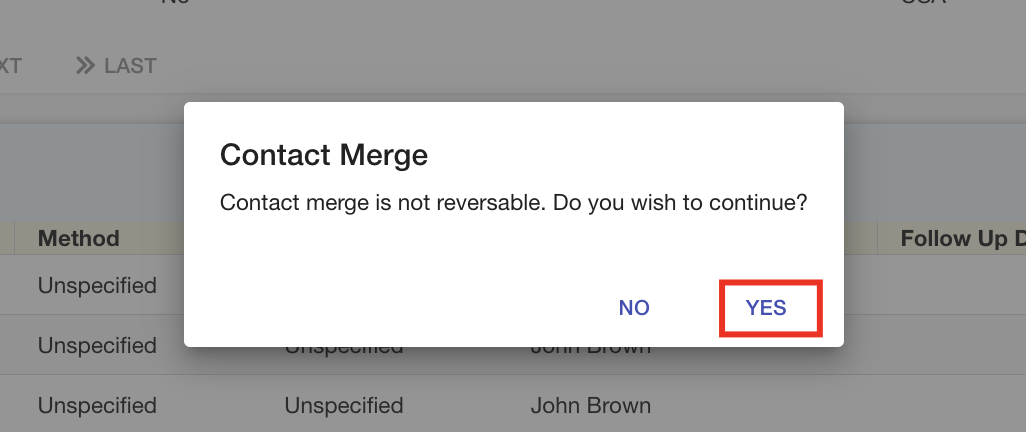 Important: The following data points from the ghost record will be merged into the survivor record: Contact Tags, Contact Phones, and Communication Logs.