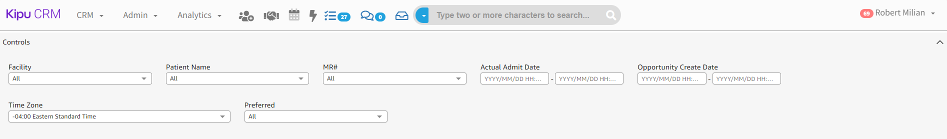 - Facility: Filter the data based on the specific facility assigned to the patient record.