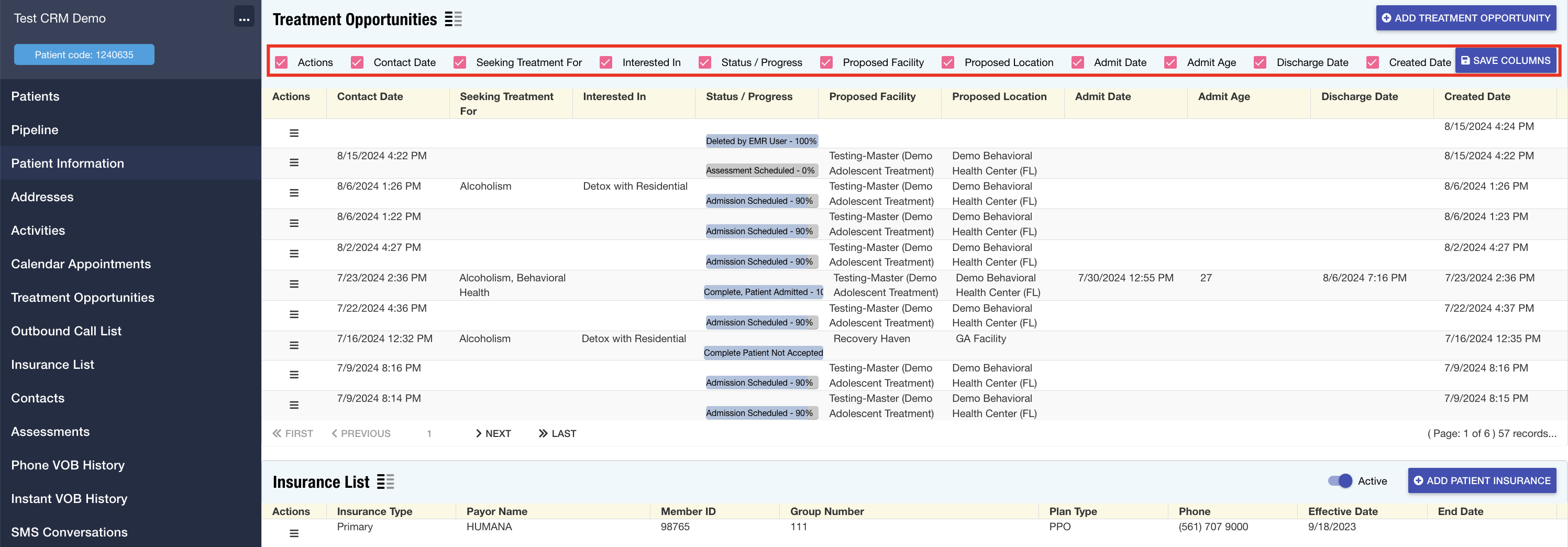 Patient Records: The Treatment Opportunity section in the patient record has been updated to include show/hide functionality, allowing users to customize the columns displayed. This enhancement provides greater control and flexibility over how information is presented in this area.