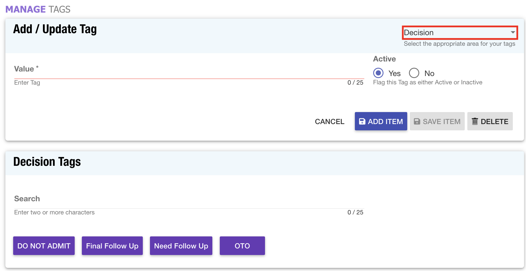 Custom Tags: The Custom Tags application has been enhanced to support the creation of tags specifically for the decision area in Treatment Opportunity records. This update allows for more precise categorization and documentation tailored to decision-related actions.