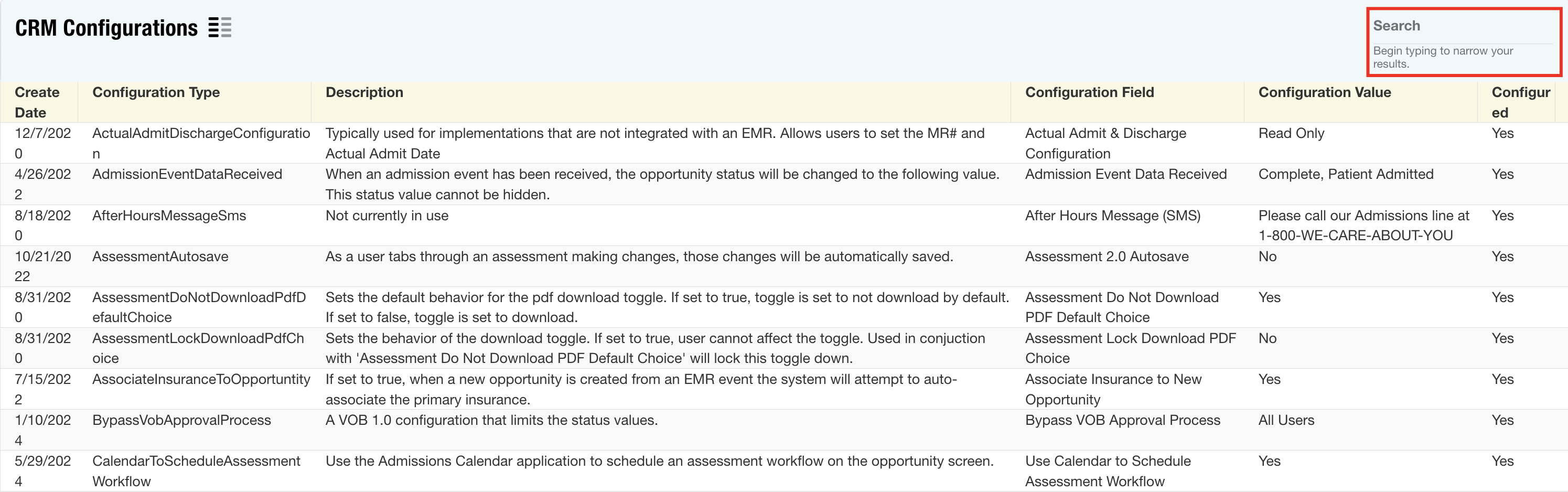 CRM Configurations: The CRM Configurations application has been enhanced with new search functionality, making it easier for users to locate and edit configurations, thereby streamlining the overall user experience.