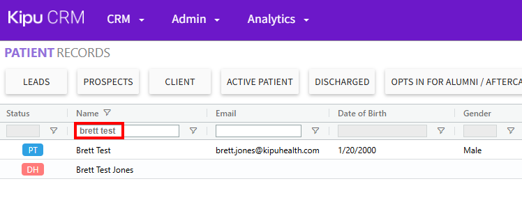 - Navigate to Kipu CRM Dashboard > Click on Record Tab.