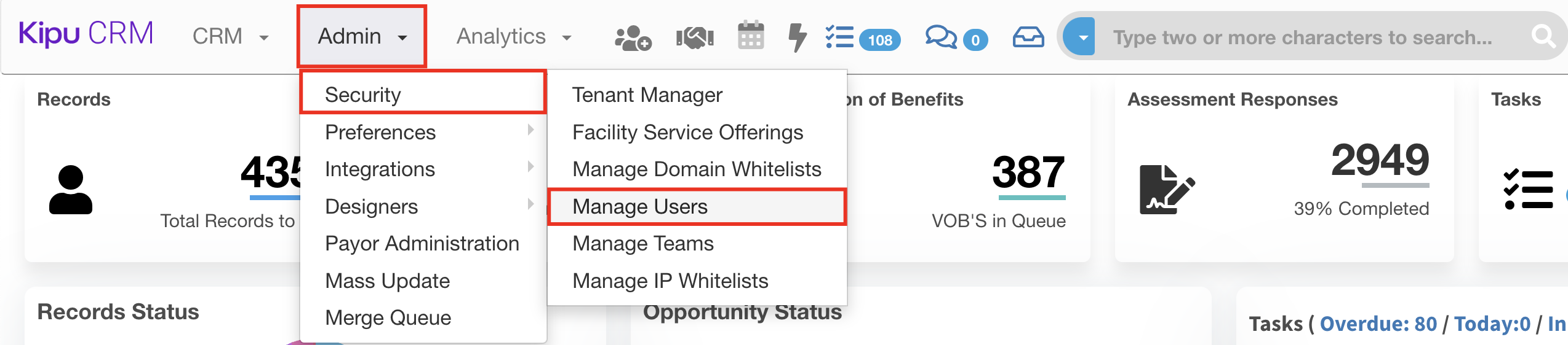 - Navigate to Admin > Security > Manage Users.