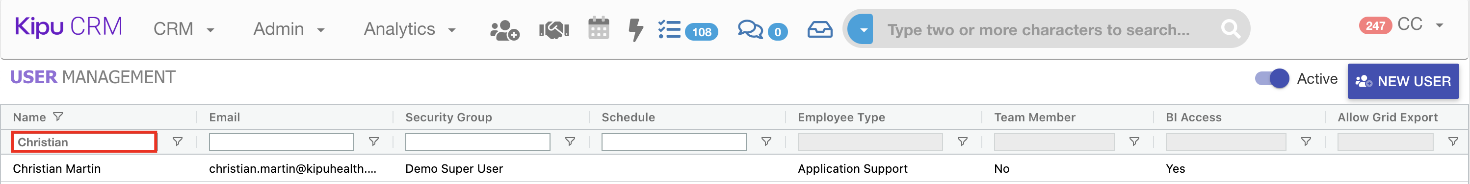 - Moving forward, the particular user will be available for selection throughout all Relationship Manager lists in the Kipu CRM.