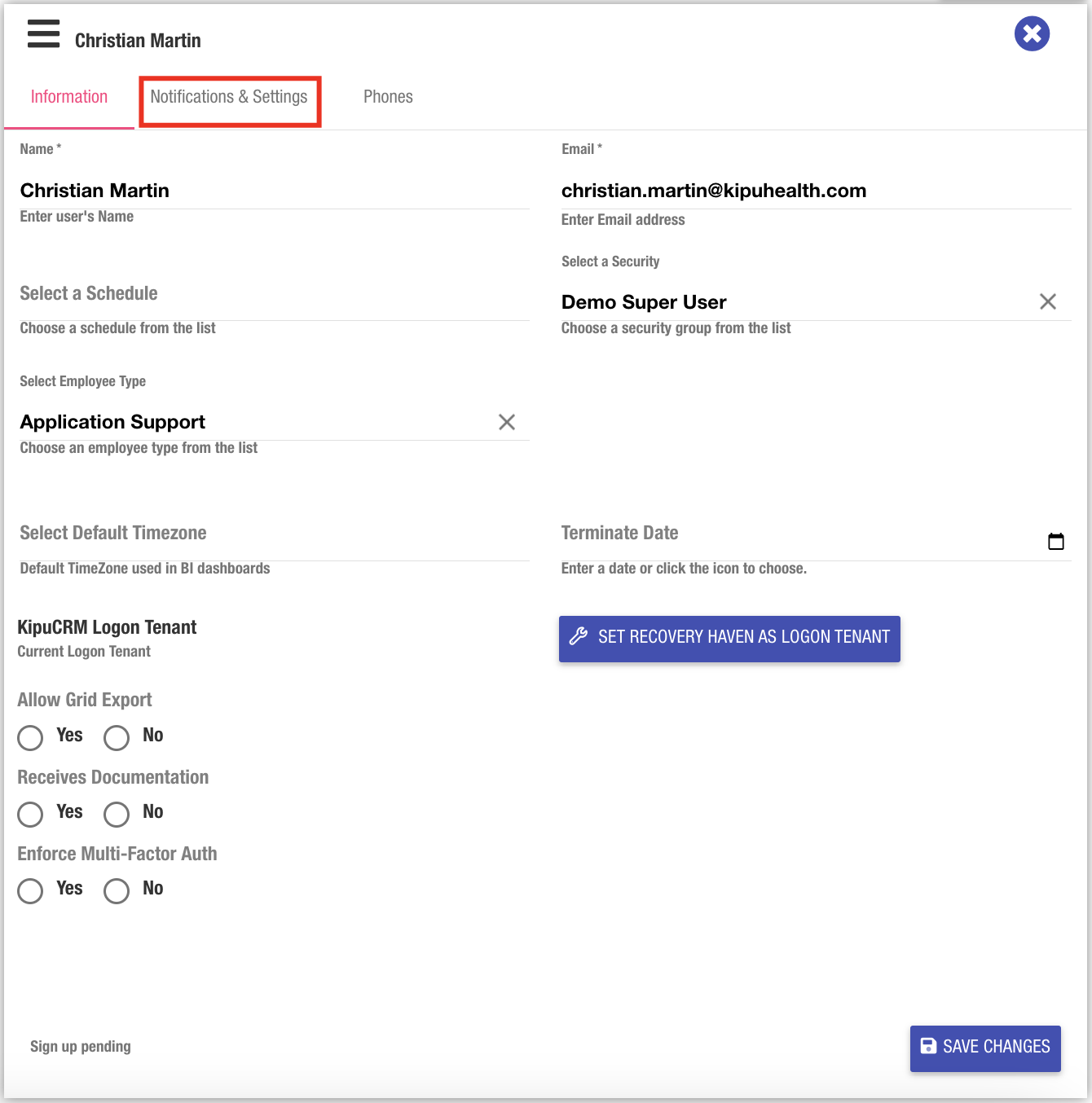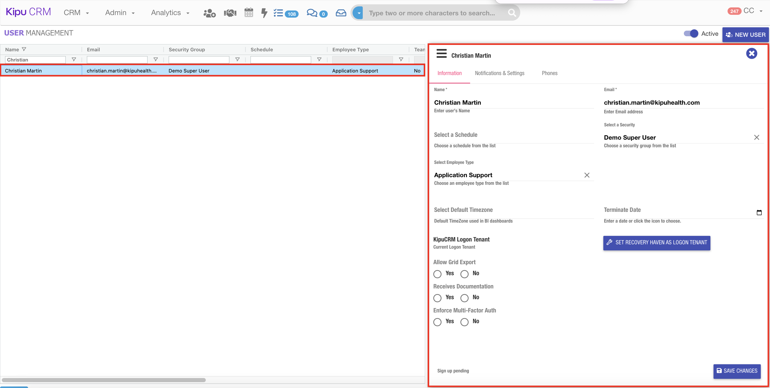 - Roles: Super User