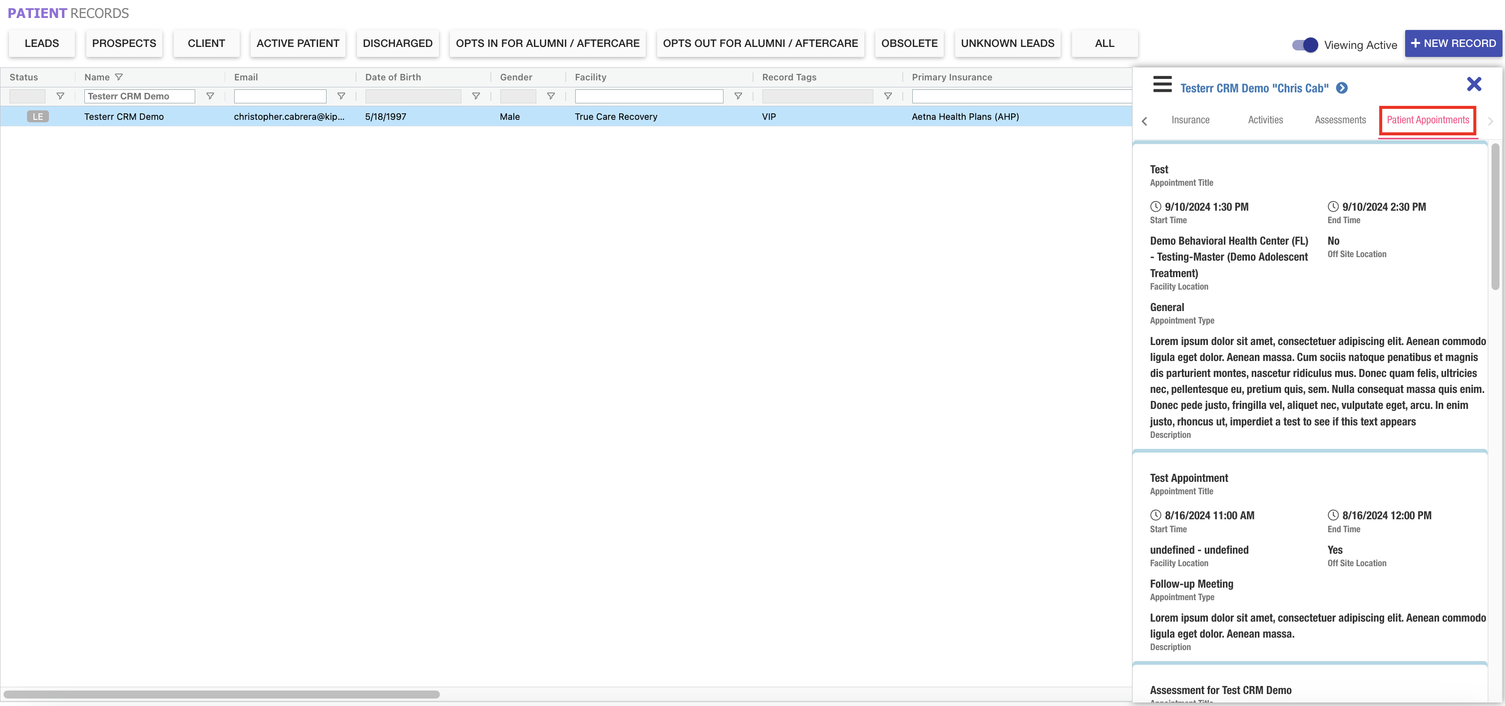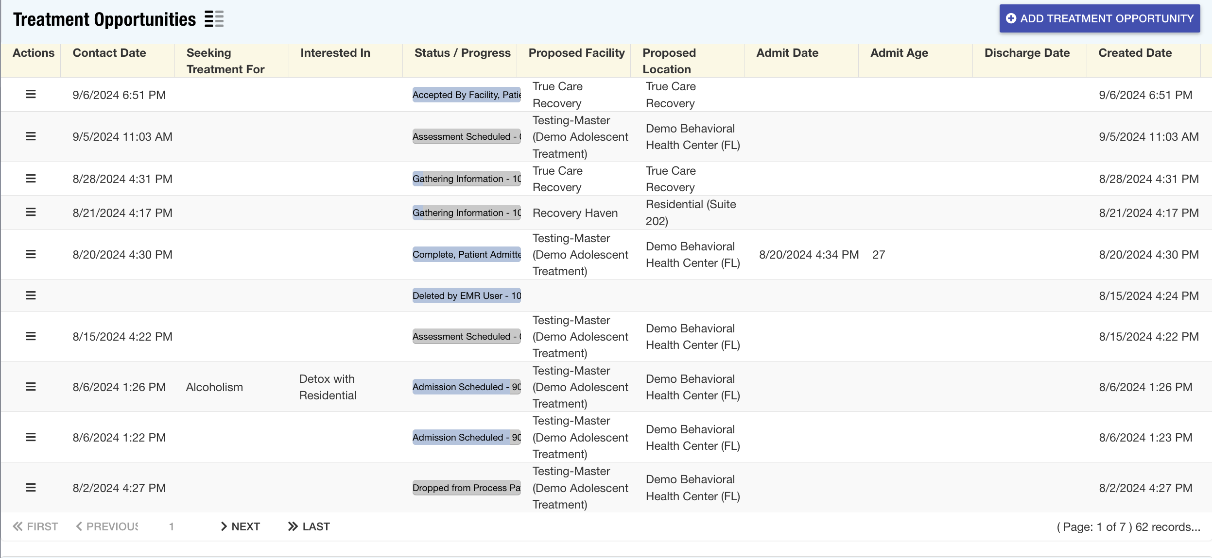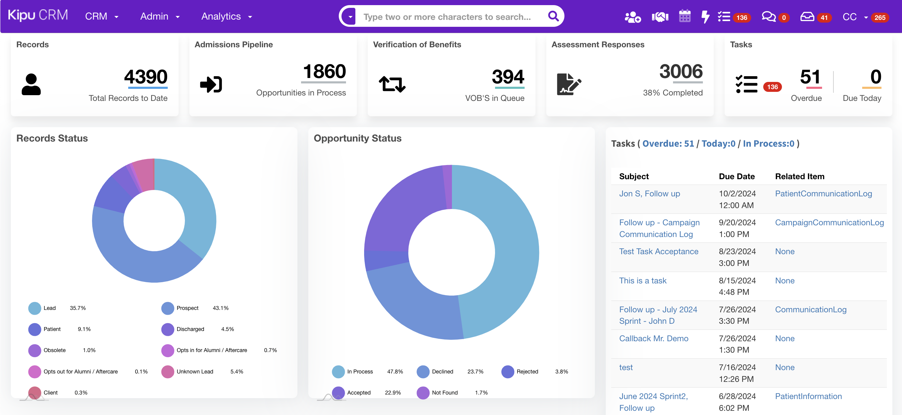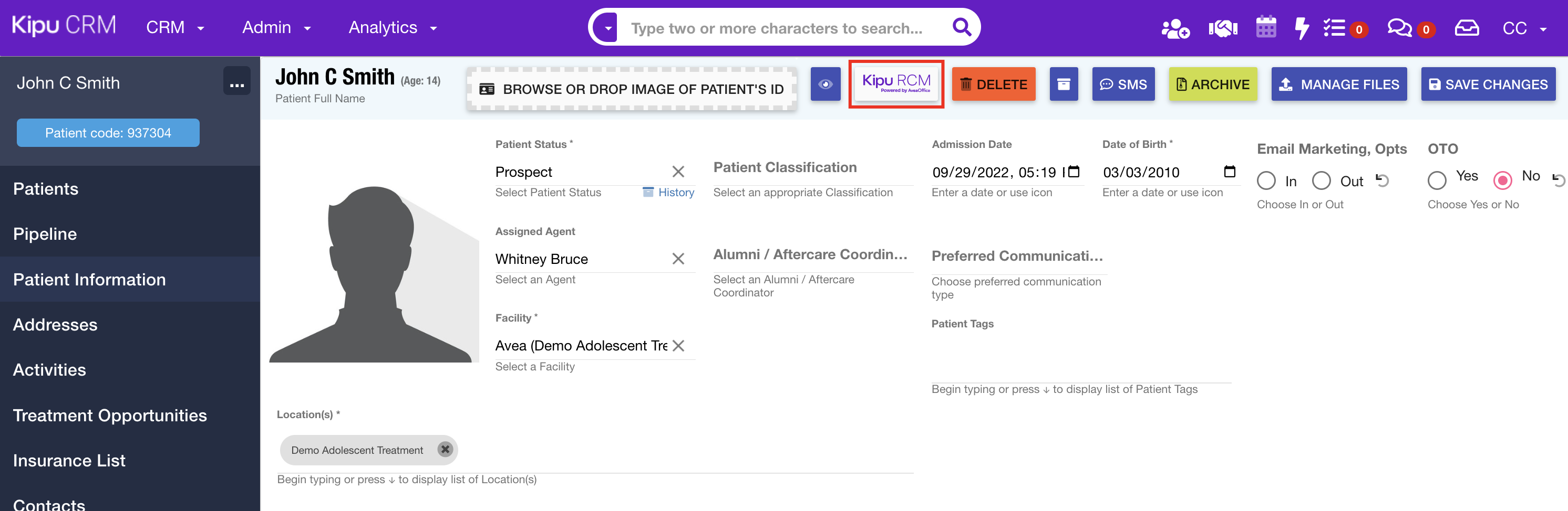 - CRM to EMR Events: The transfer to EMR feature has been updated to ensure the patient contact’s first and last names are accurately passed to the Kipu EMR, ensuring correct data flow to the EMR facesheet.