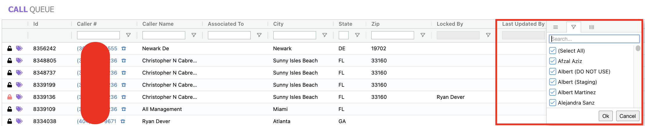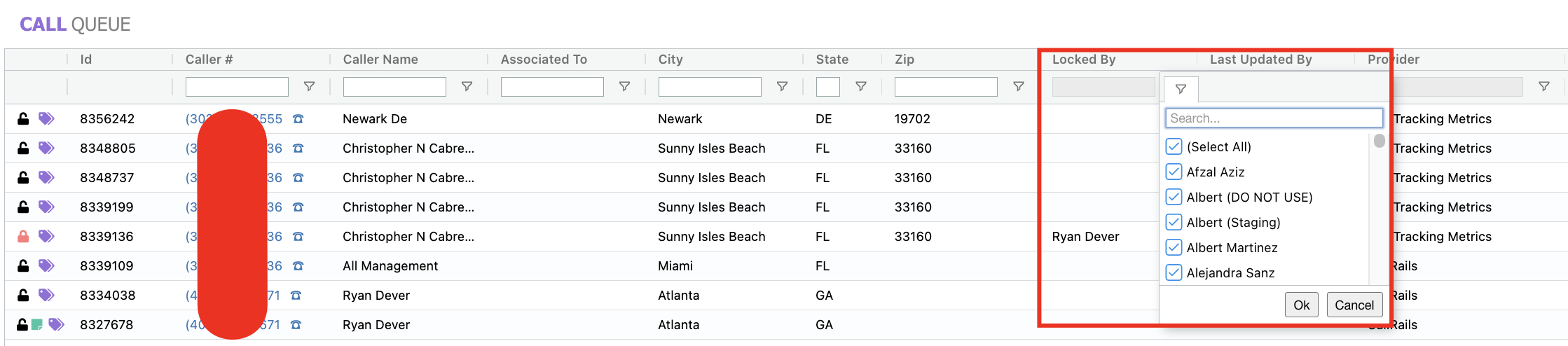 Call Queue: The Locked By and Last Updated By columns in the Call Queue grid have been updated to support multi-select control filtering. This enhancement allows users to filter call records more efficiently by selecting multiple criteria in the columns.