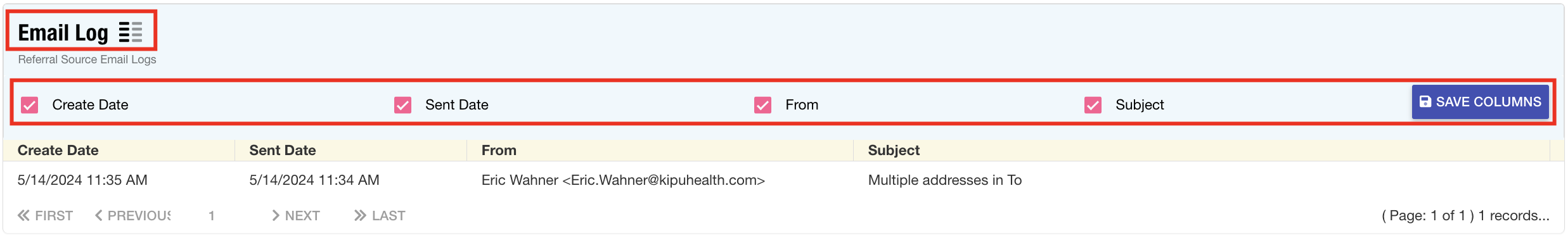 Referral Sources: The Email Log section in Referral Source records has been updated to include show/hide functionality, giving users the ability to customize which columns are displayed. This enhancement offers increased control and flexibility over how information is presented in this area.