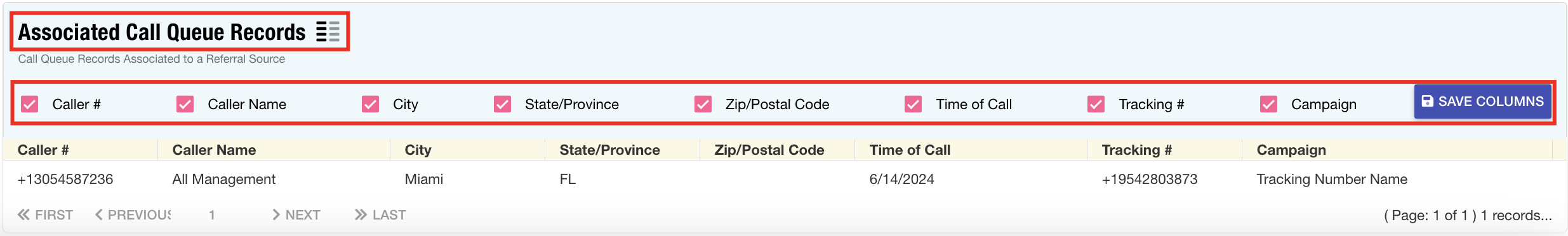 Referral Sources: The Associated Call Queue Records section in Referral Source records has been updated to include show/hide functionality, giving users the ability to customize which columns are displayed. This enhancement offers increased control and flexibility over how information is presented in this area.