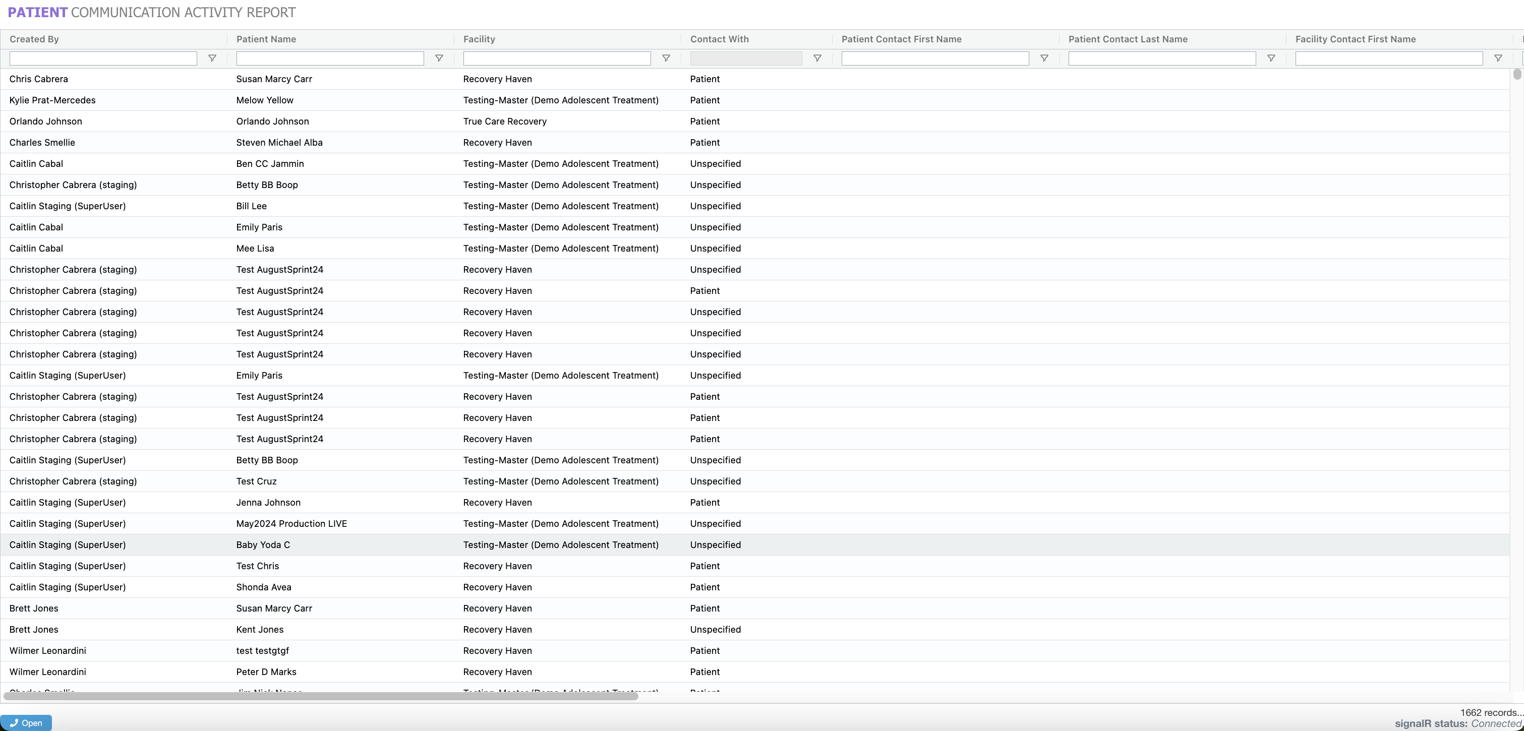 Analytics: The Patient Communication Activity report has been updated to utilize 100% vertical scaling to ensure all available screen space is used for a refined appearance on the site.
