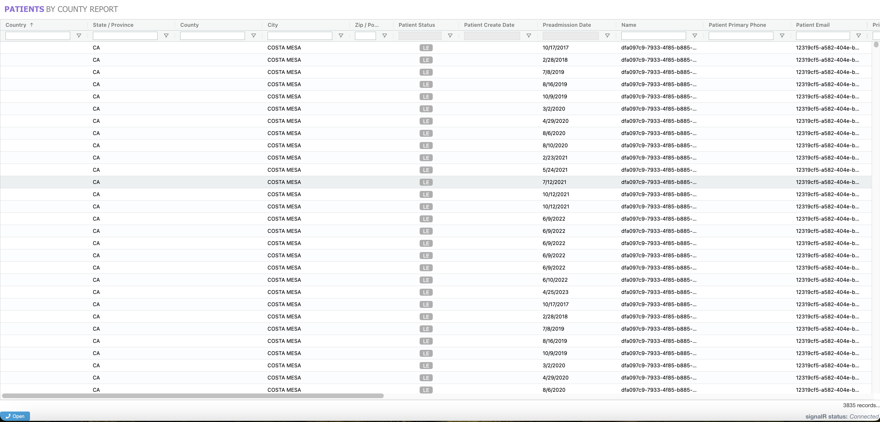 Analytics: The Patients by County report has been updated to utilize 100% vertical scaling to ensure all available screen space is used for a refined appearance on the site.