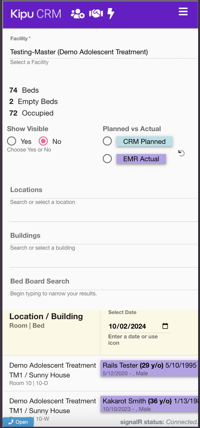 Bed Board: The Bed Board has been optimized for mobile devices, enabling CRM users to easily review bed reservations and occupancy while on the go for improved accessibility and convenience.
