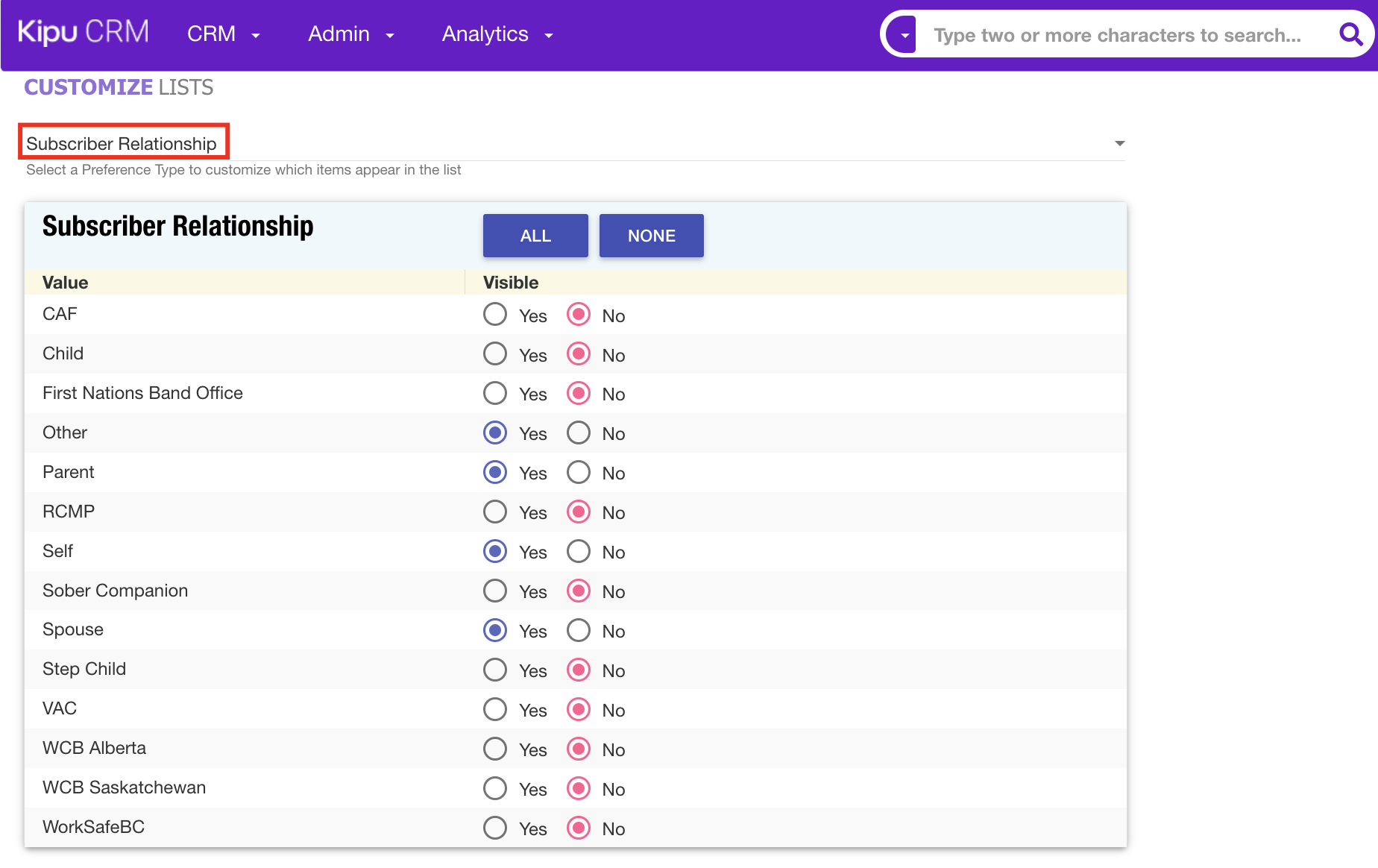 Customize Lists: The Customize List application now includes a new preference type for “Subscriber Relationship.” This update empowers CRM Super Users to manage and customize the dropdown list for the Relationship of Patient to Subscriber field, providing greater flexibility and control over insurance-related documentation.