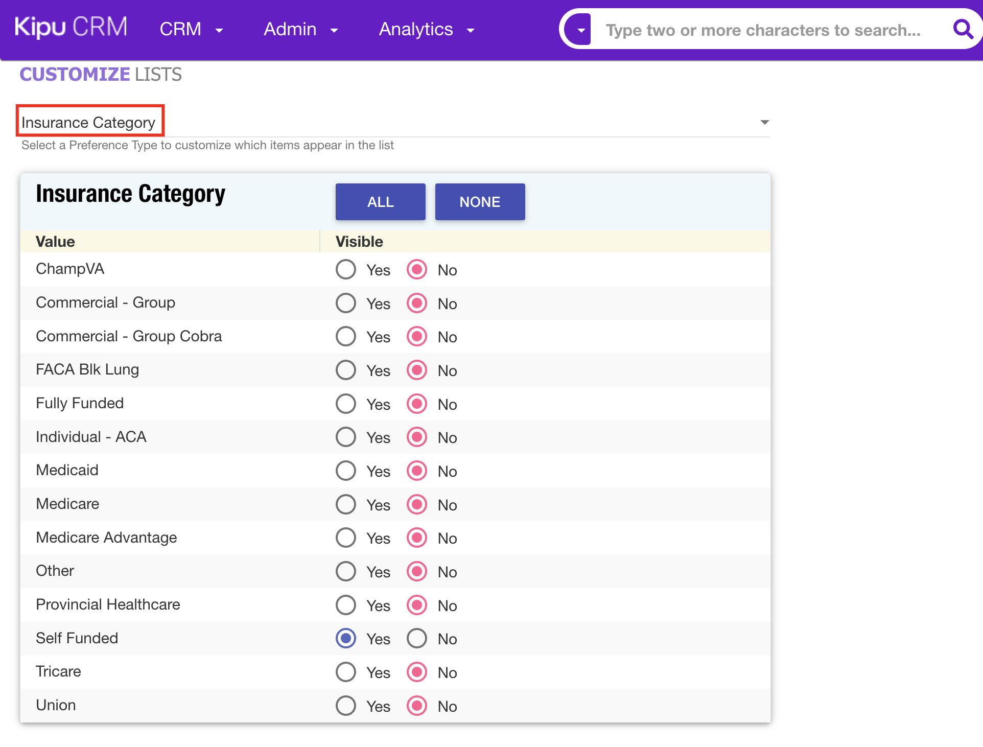 Customize Lists: The Customize List application now features a new preference type for “Insurance Category.” This enhancement allows CRM Super Users to manage and customize the dropdown options for the Insurance Category field, offering increased flexibility and control over insurance-related documentation.
