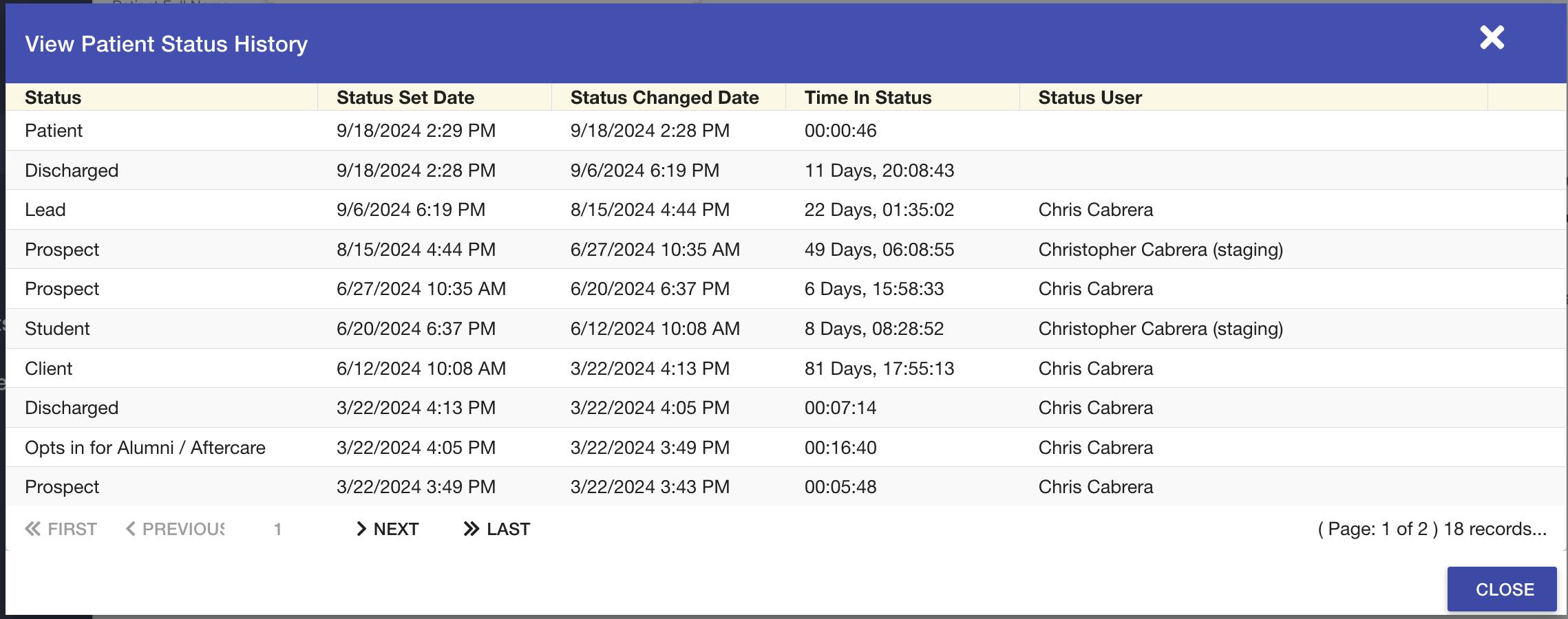 Patient Records: The Patient Status History Log has been updated with a modernized material design, enhancing its appearance and ensuring consistency with the overall look and feel of the site.