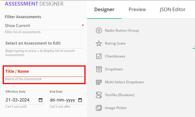 - Next, click on Designer & select the New Assessment option