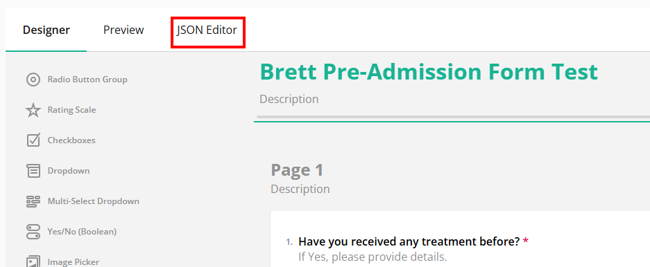 - Select the JSON Editor tab