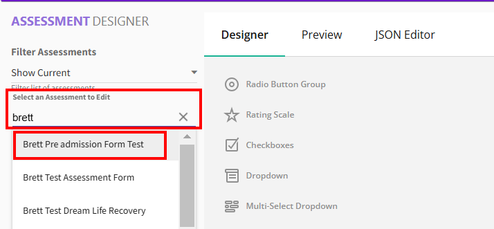 - Navigate to Admin > Designers > Assessment Designer