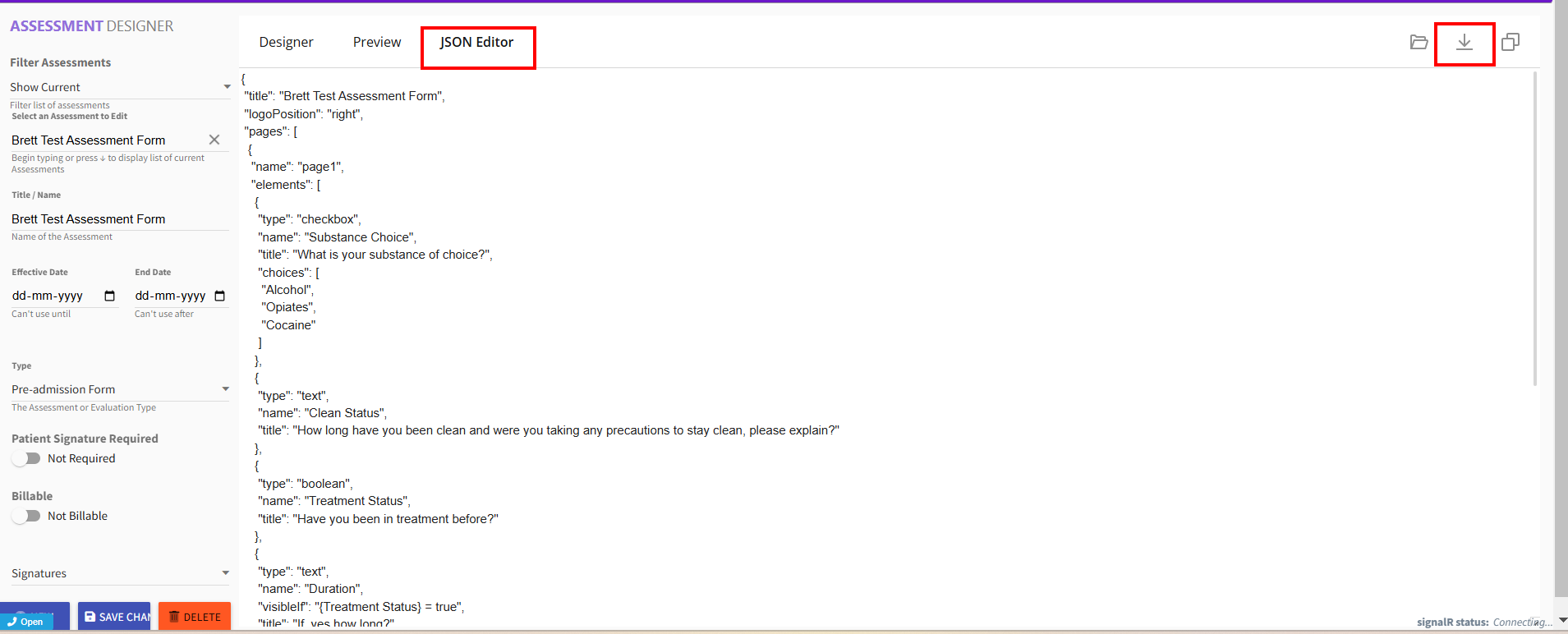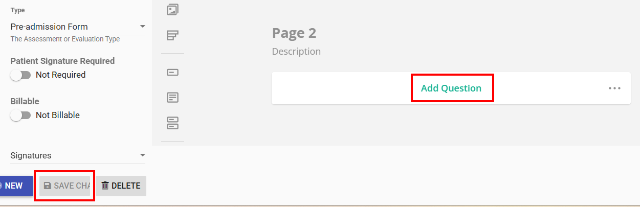 - The Assessment cannot be Saved unless a New field is added.