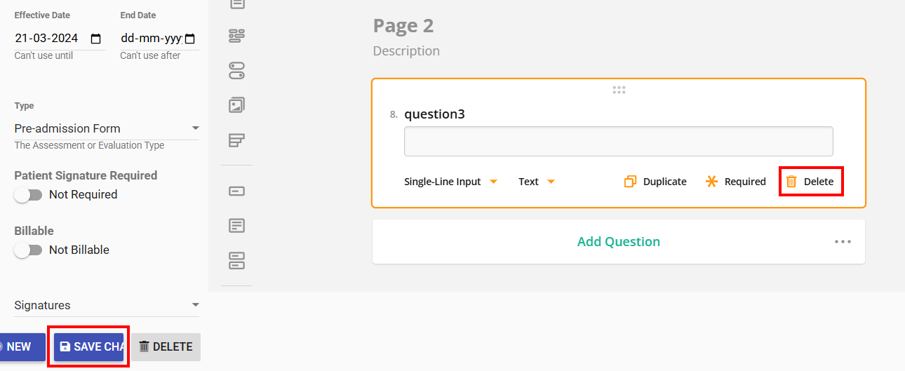 Delete the newly added question and Save the changes made.