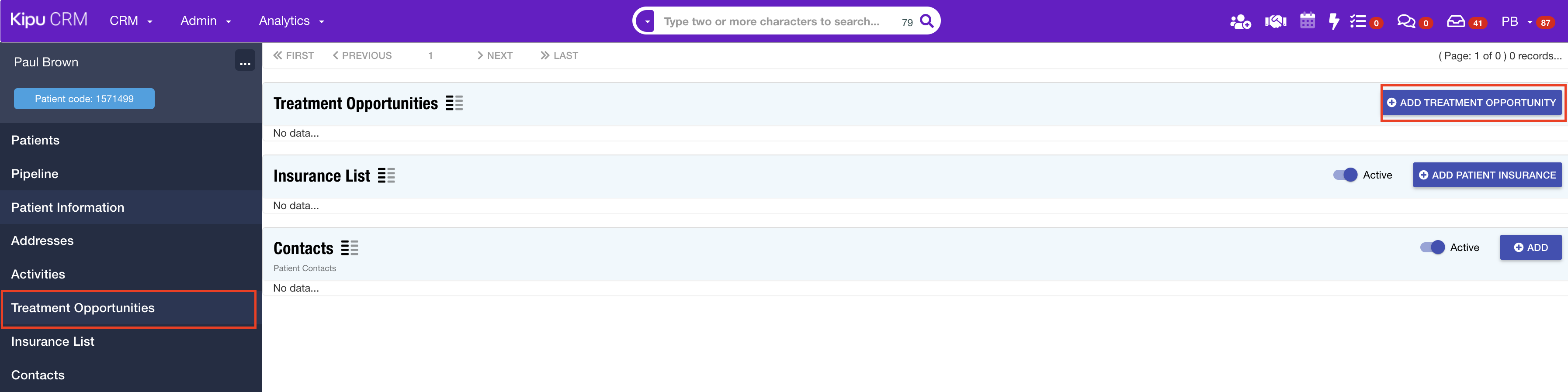 - Navigate to the desired patient record from your CRM dashboard.