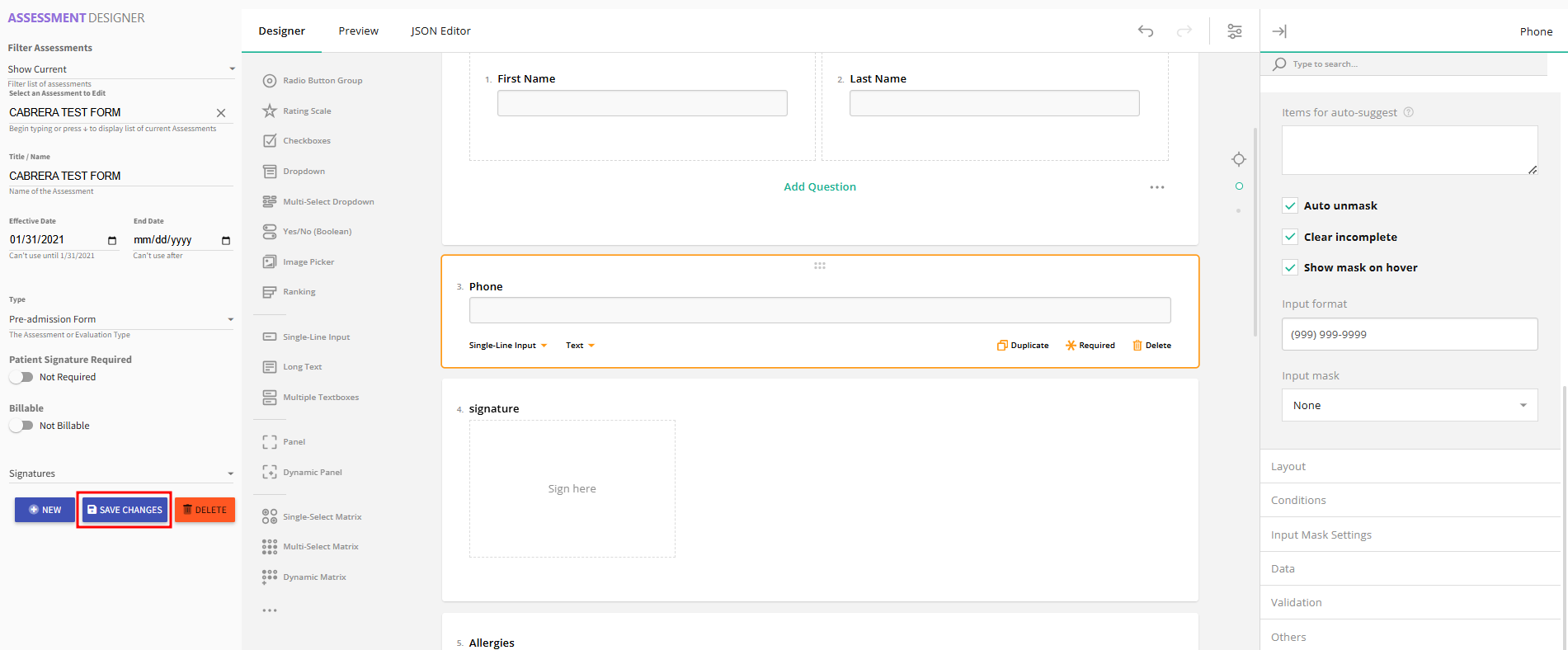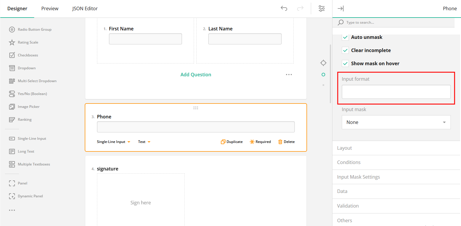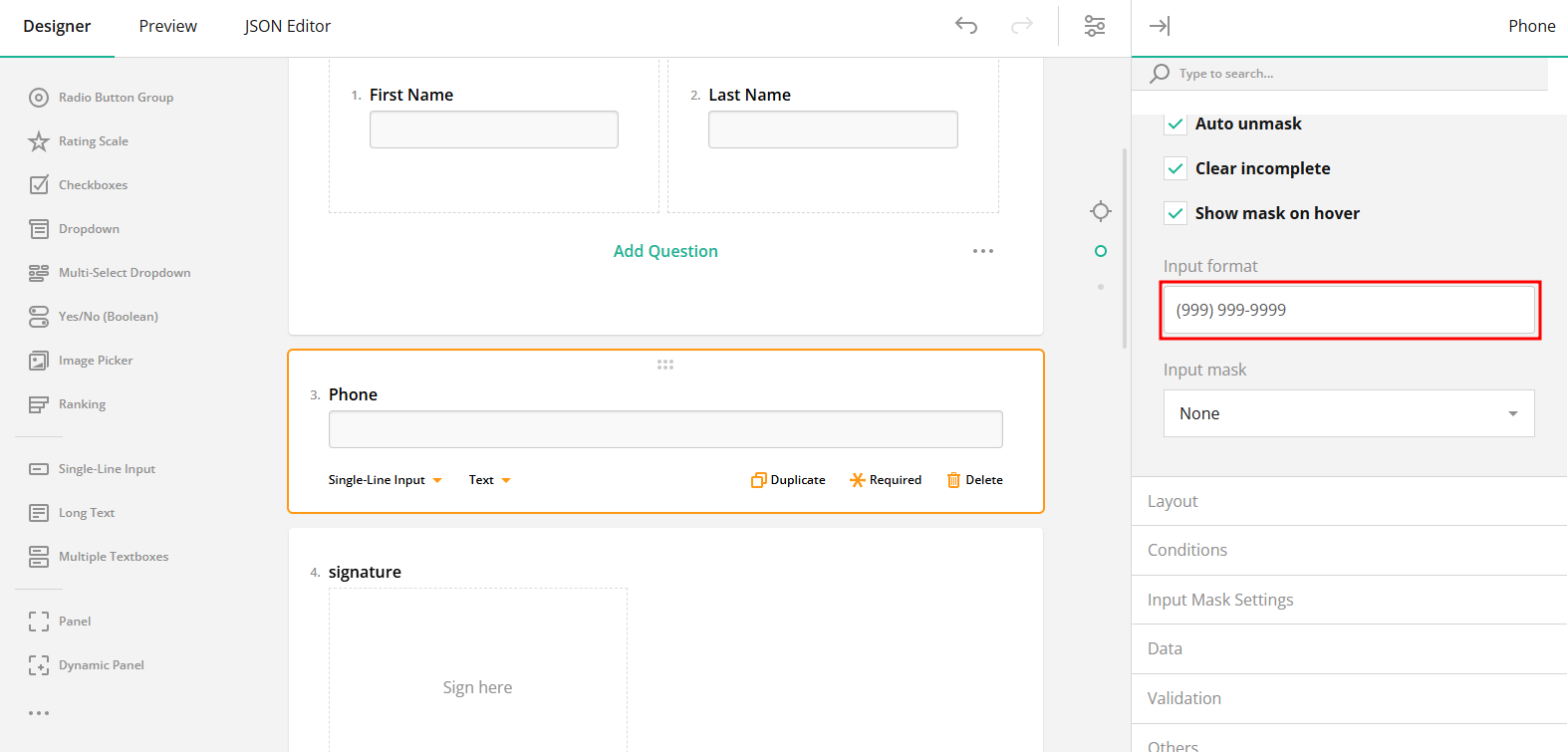 - Enter the standard U.S. format in the Input format field as (999) 999-9999.