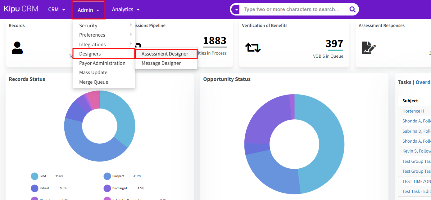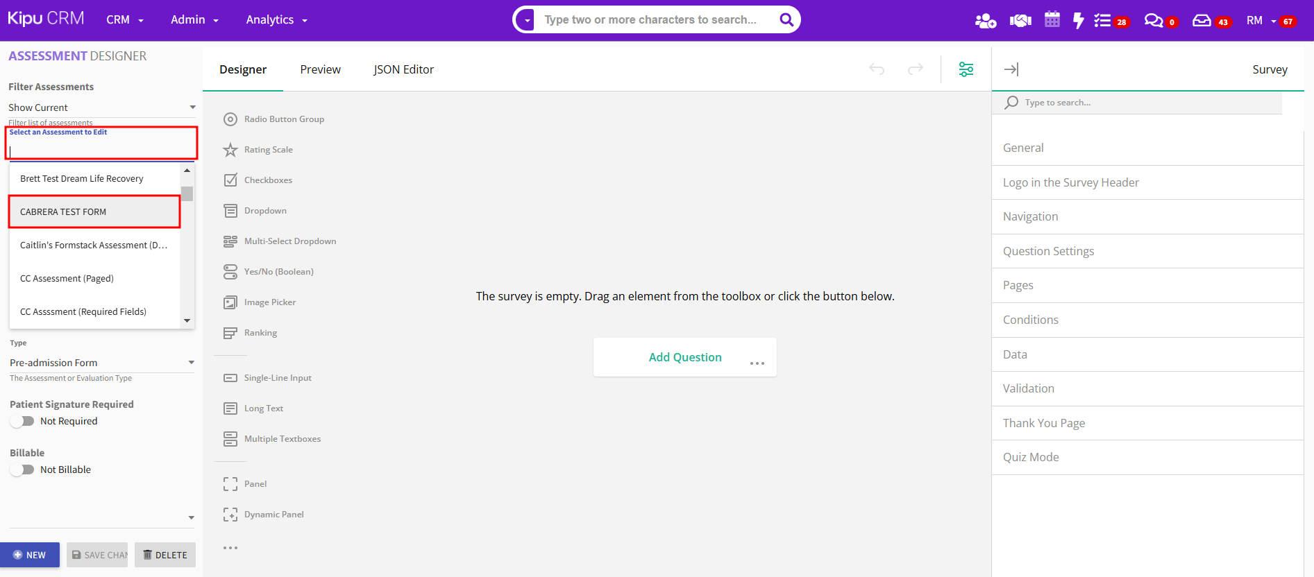 Select an Assessment to Edit from the panel on the left-hand side of the screen.