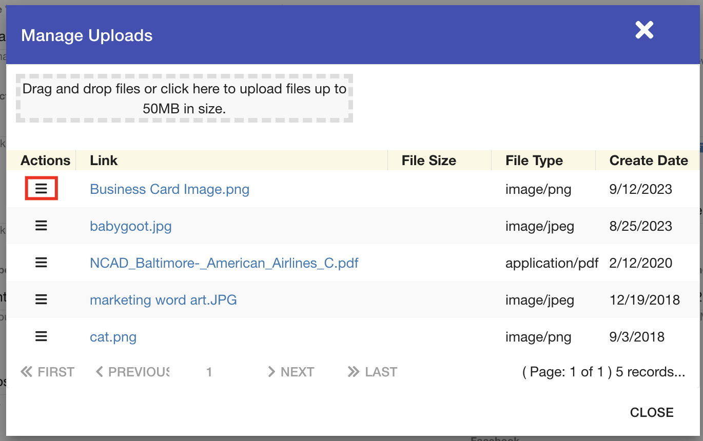 - Select the Manage Files icon.