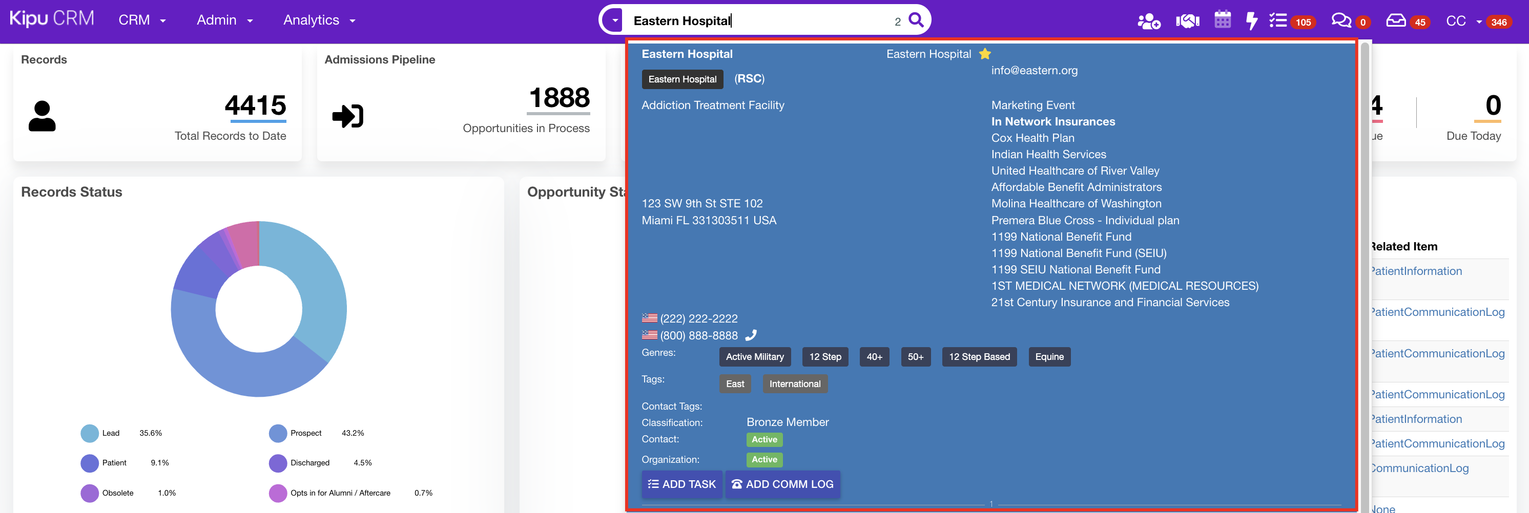 - Using the Global Search bar at the top of the screen enter and select the desired Referral Source record.