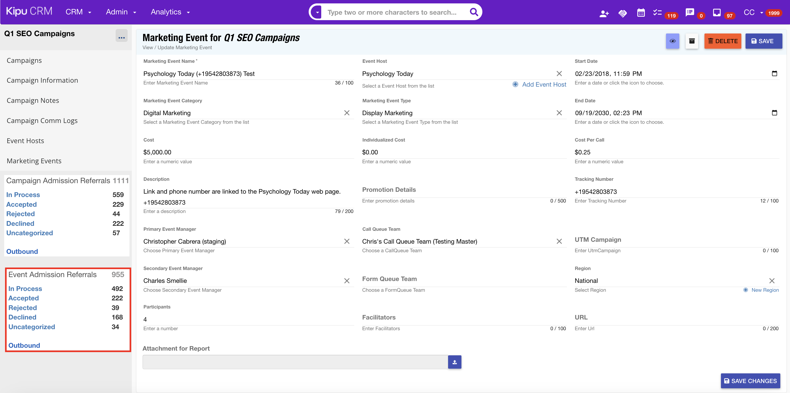 Campaigns & Marketing: The Event Admission Referrals area within Marketing Events has been updated to align with the new design pattern, ensuring a consistent appearance across all Kipu products.