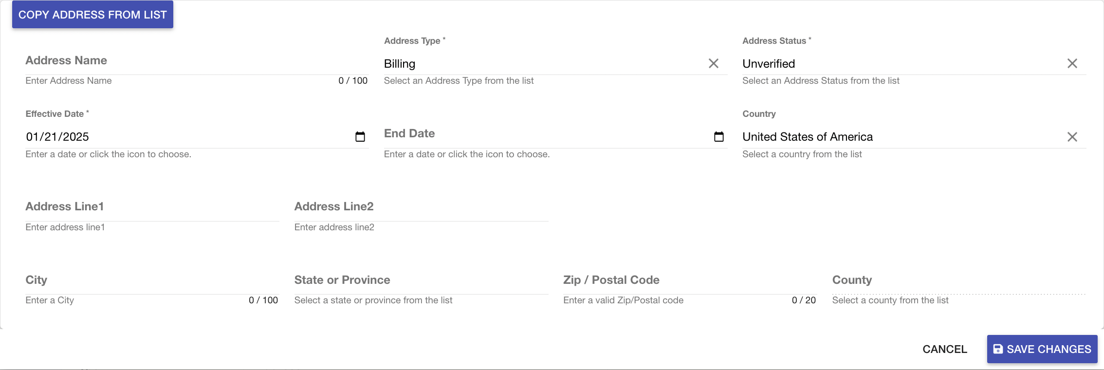 Patient Address Records: The user interface for the Patient Address record has been updated to enhance its intuitiveness and improve its overall appearance within the site.