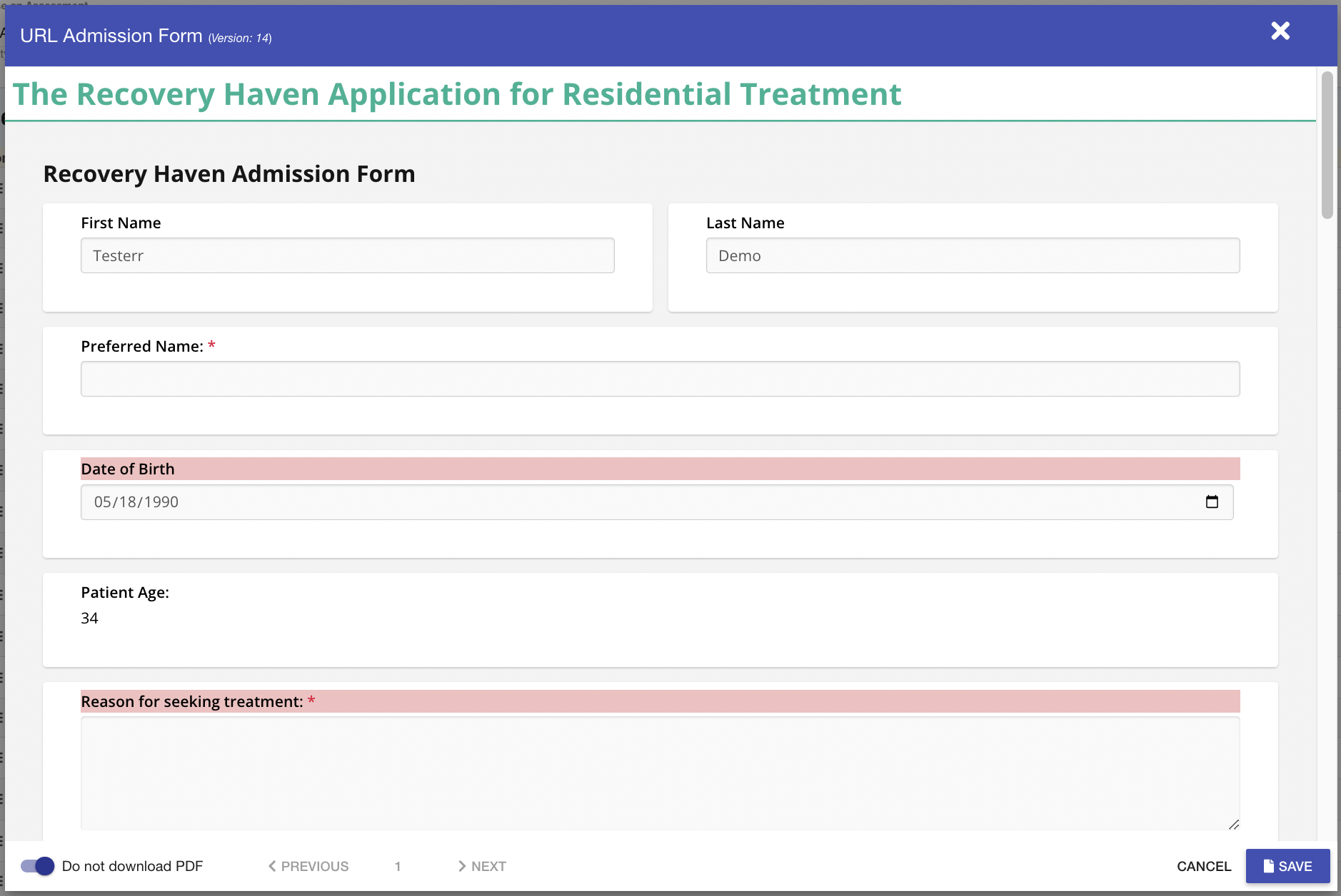 Assessments: The PDF function has been updated to include red highlights for fields marked as important, enhancing visibility and improving the assessment review process.