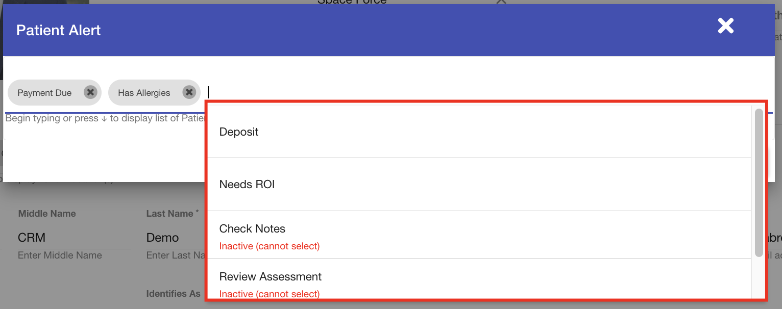 Patient Alerts: The Patient Alerts feature now automatically sorts inactive alerts to the bottom of the list, streamlining the alert selection process for improved efficiency.