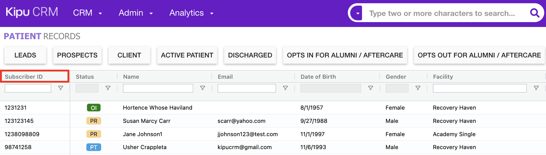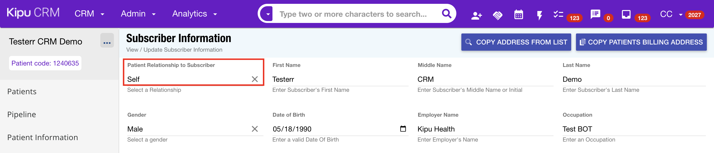 Patient Insurance Records: The field label “Relationship of Patient to Subscriber” has been updated to “Patient Relationship to Subscriber” to ensure consistency with standardized product labels across the Kipu Health ecosystem.